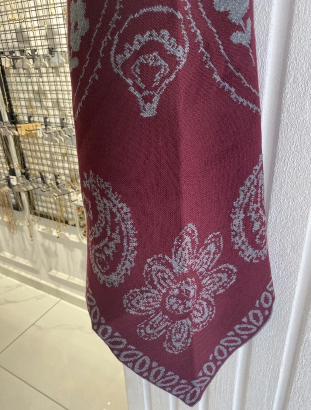 Çift Taraflı Etnik Desen Bordo Üçgen Şal