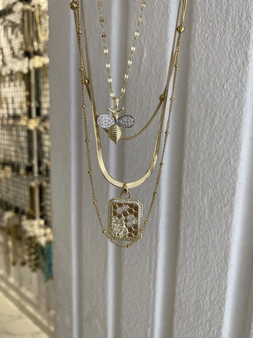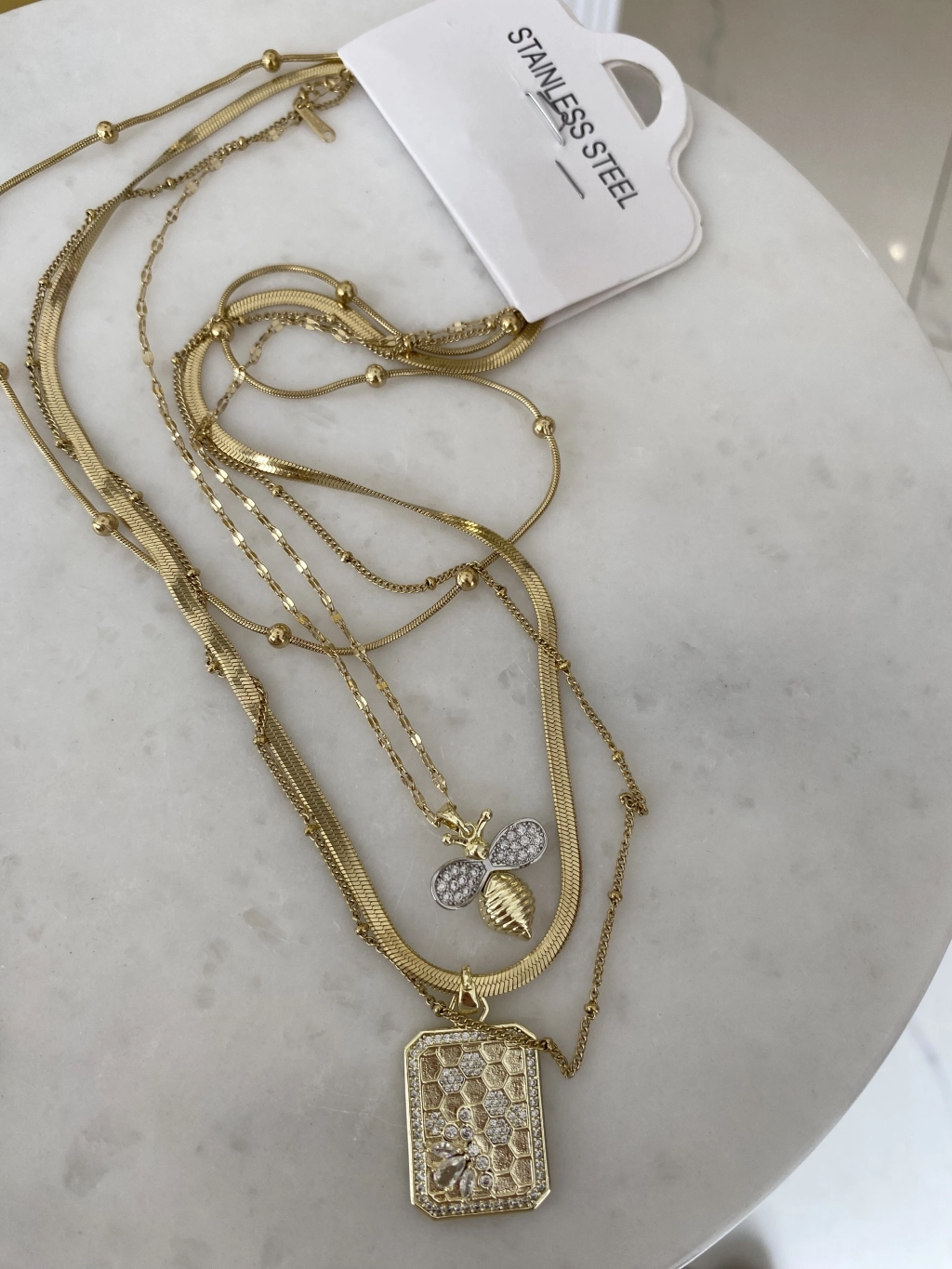 Çelik Arı Detay Dörtlü Set Kolye