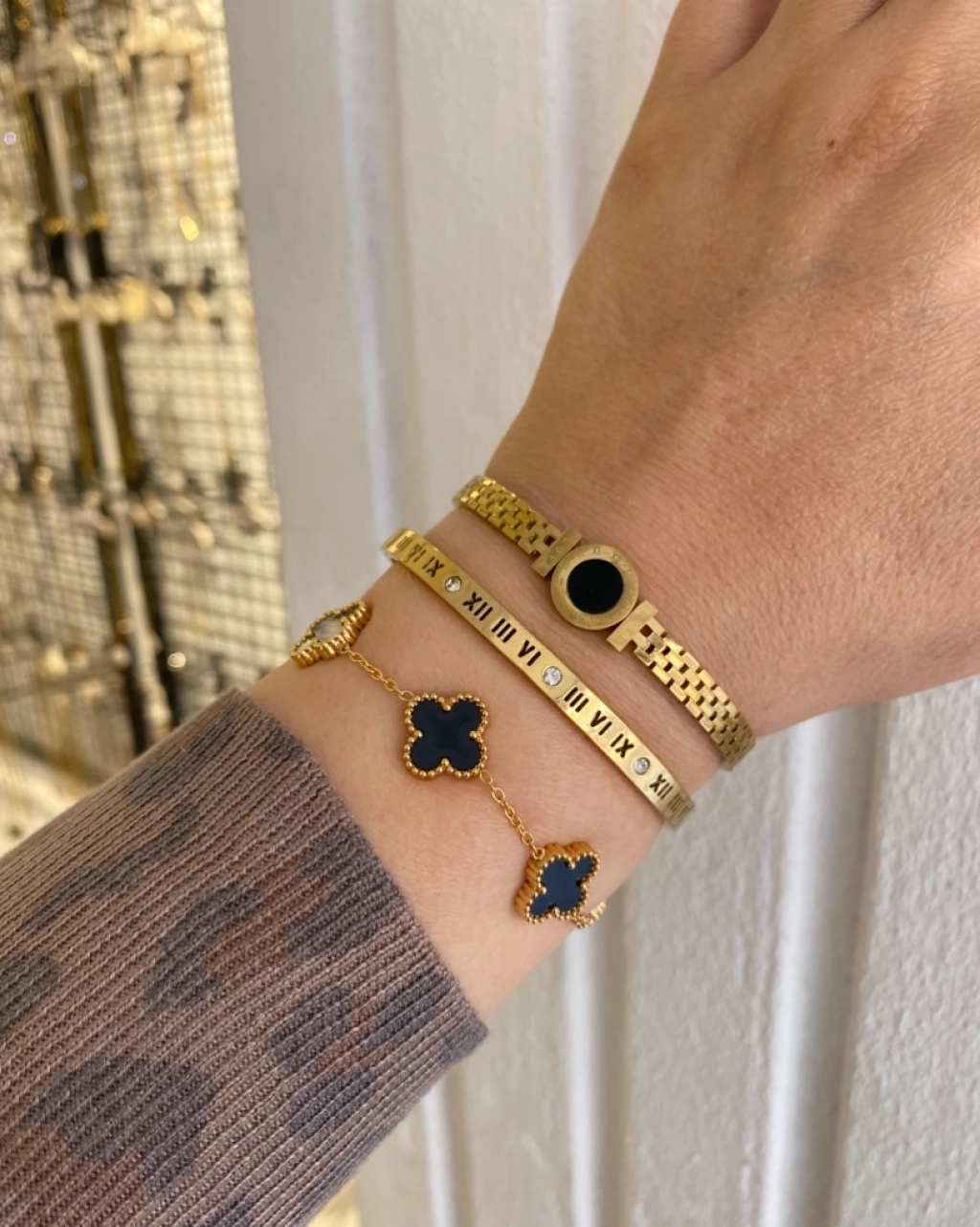 Çelik Siyah Taş Detay Kelepçe Kombini