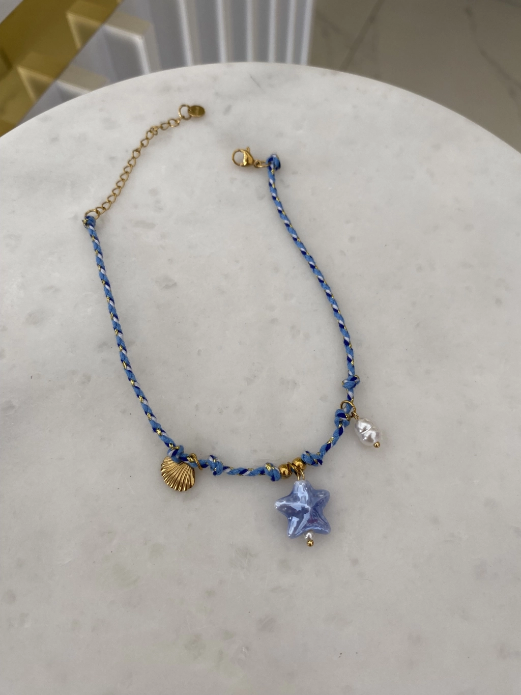 Çelik Mavi İp Üzeri Yıldız Detay Halhal