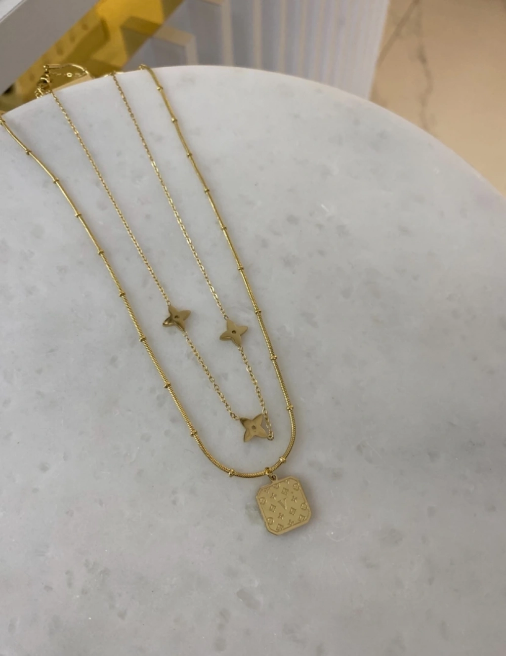 Çelik İkili Kare Plaka Kolye