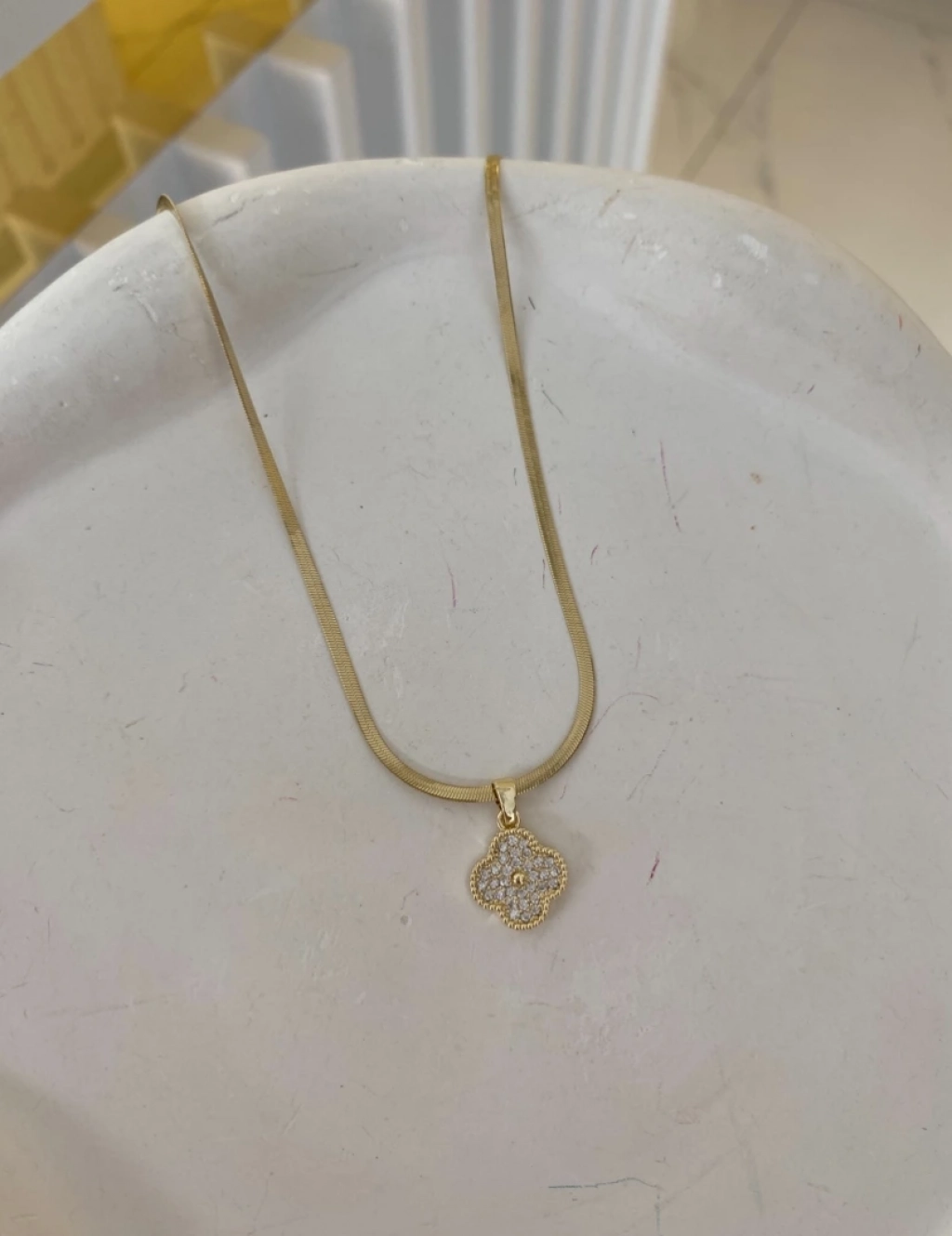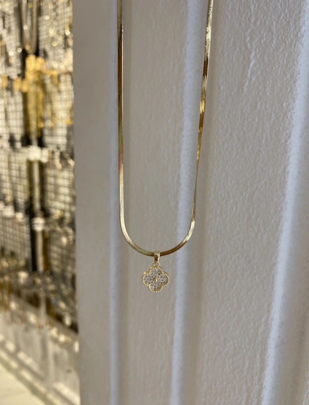 Çelik İtalyan Zincir Üzeri Yonca Kolye