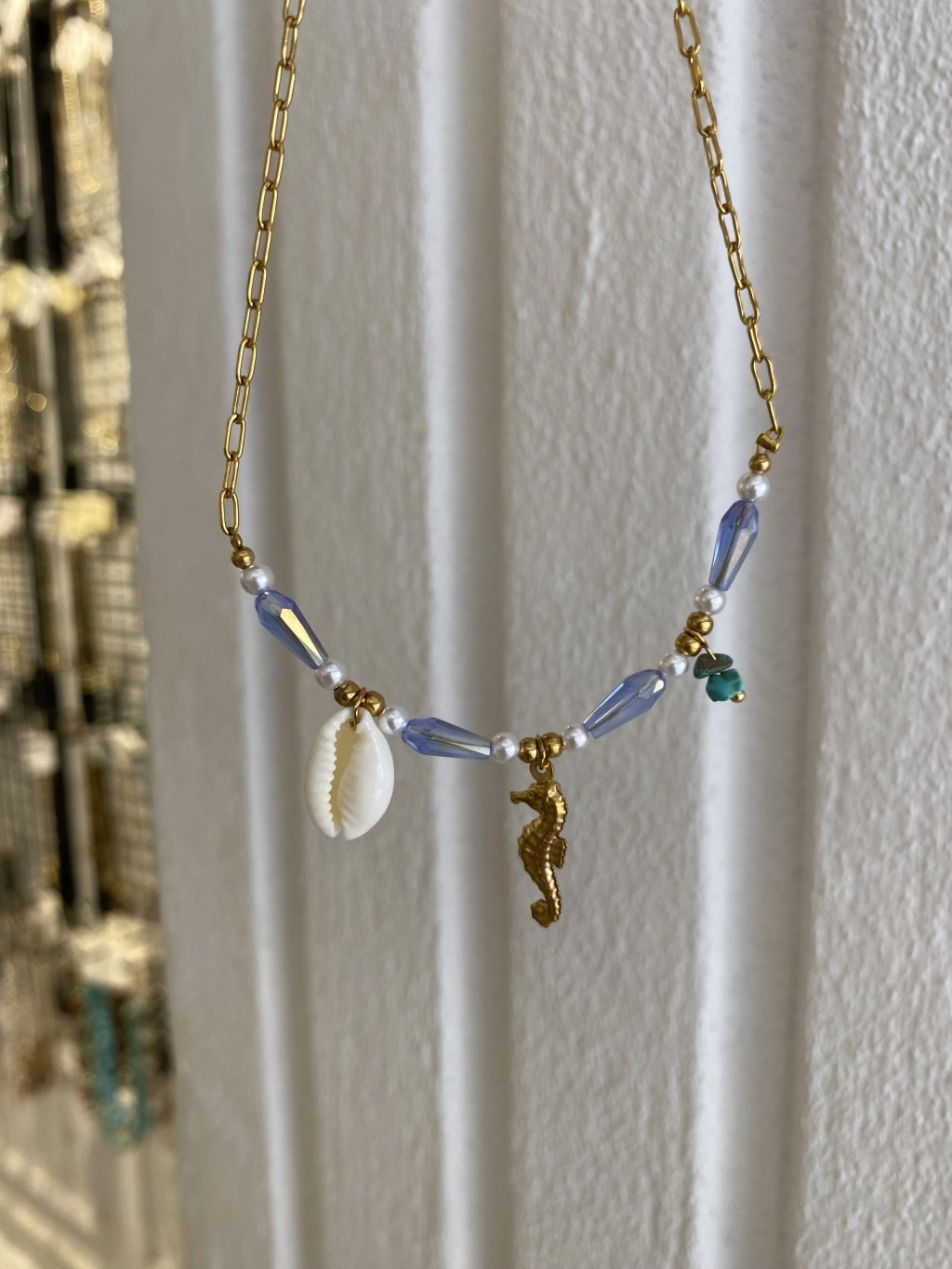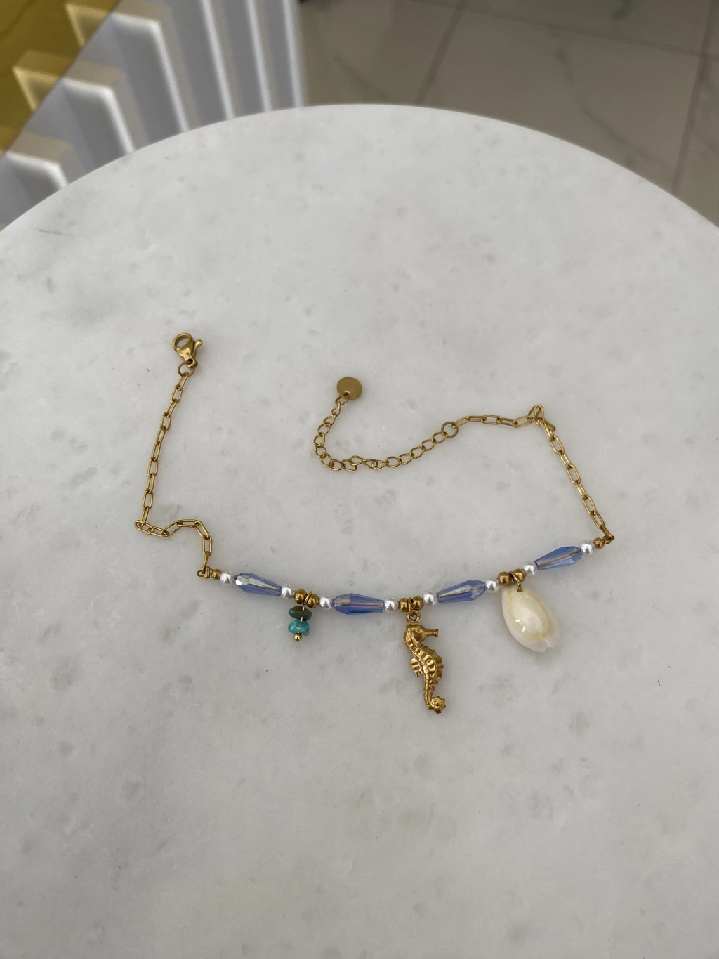 Çelik Deniz Atı ve Mavi Boncuk Detay Halhal.