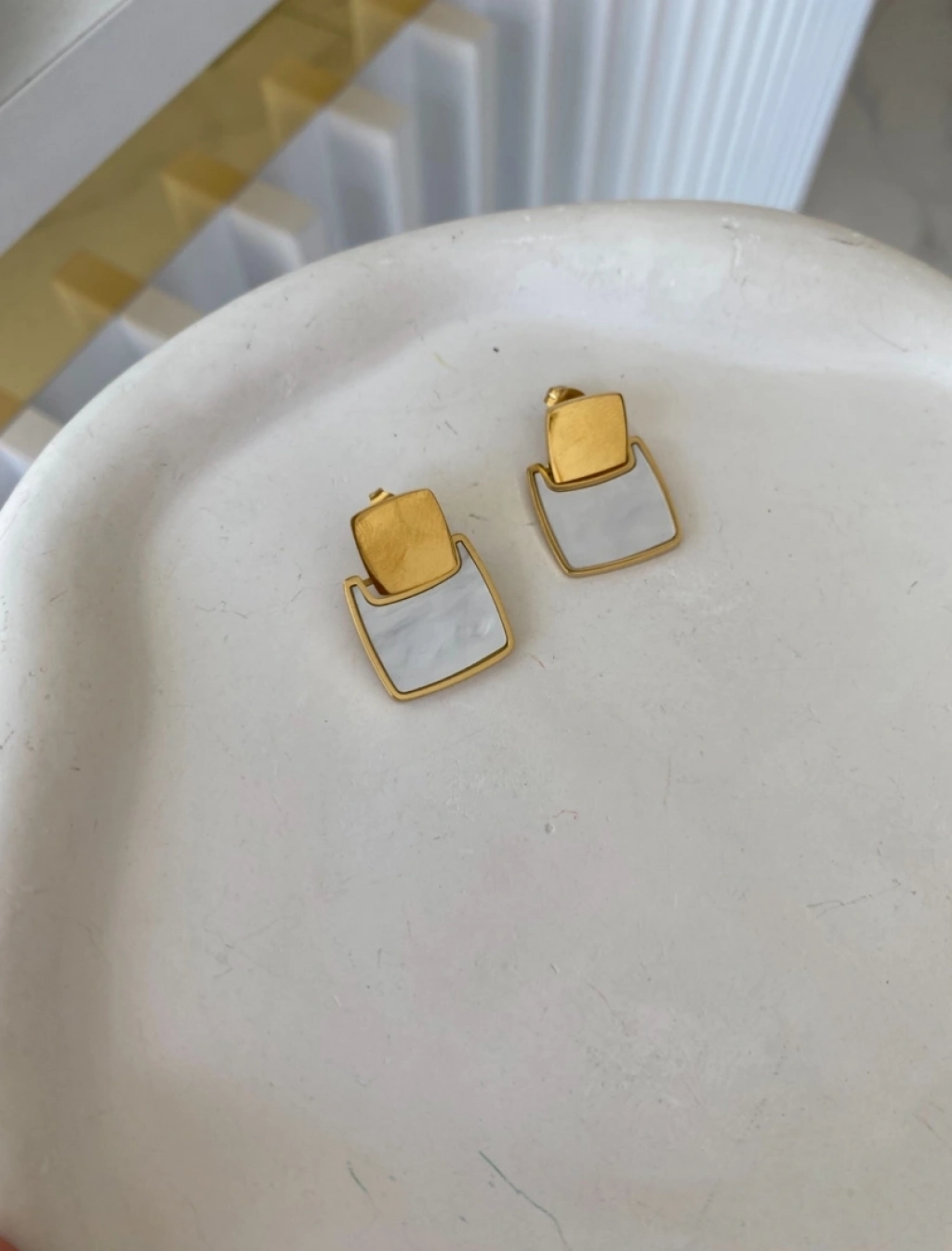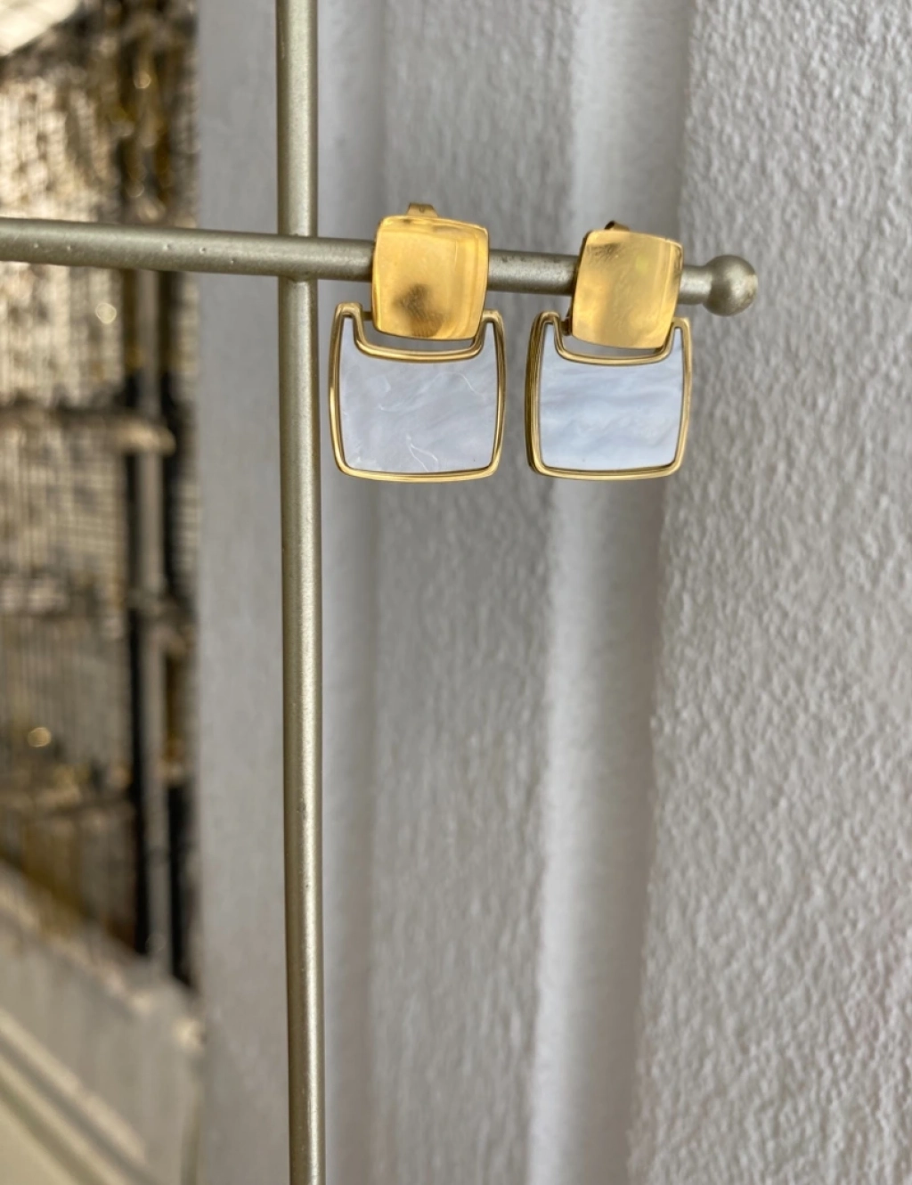 Çelik Kare Sedef Detay Küpe