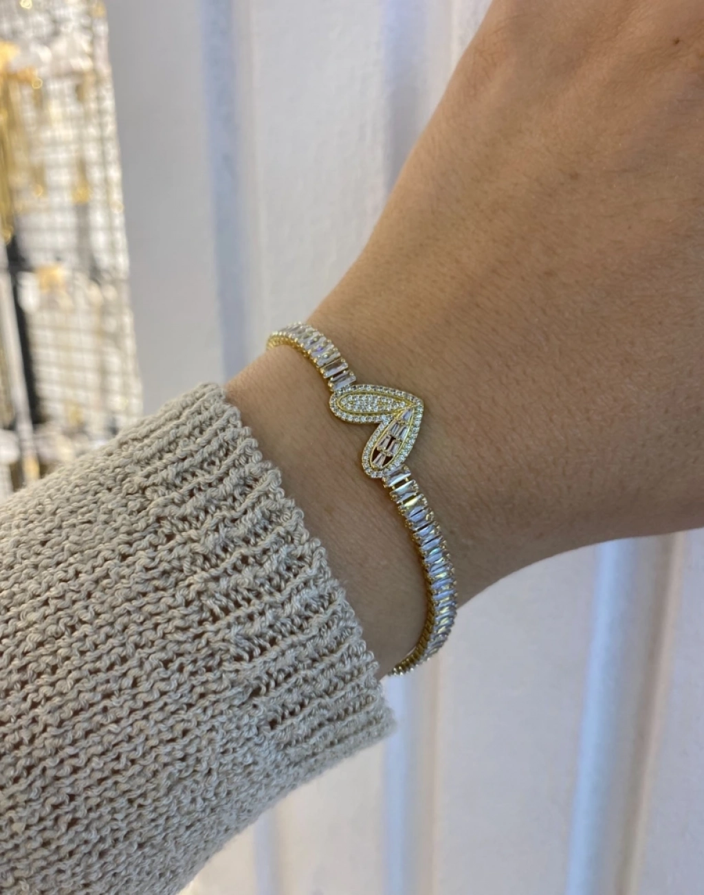 Çelik Sıralı Zirkon Taş Kare Su Yolu Bileklik