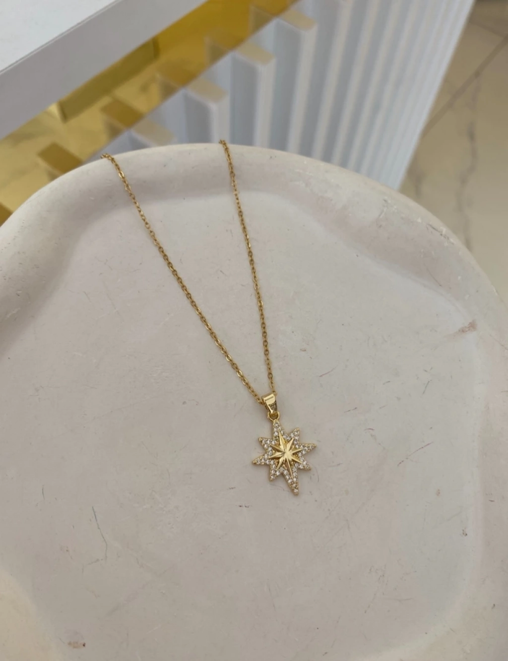 Çelik Zirkon Taş Detay Kuzey Yıldız Kolye