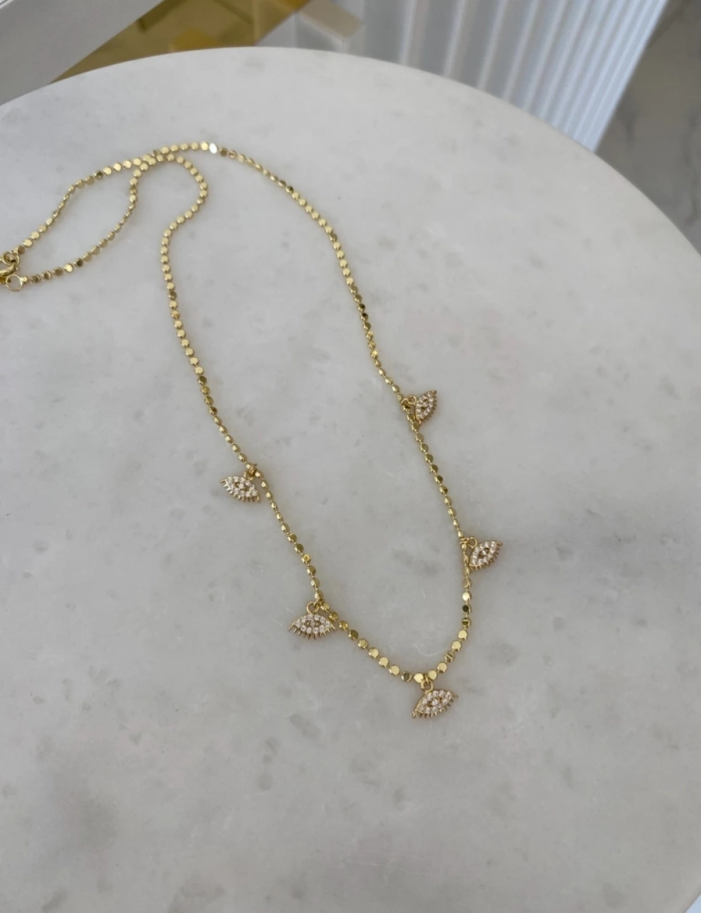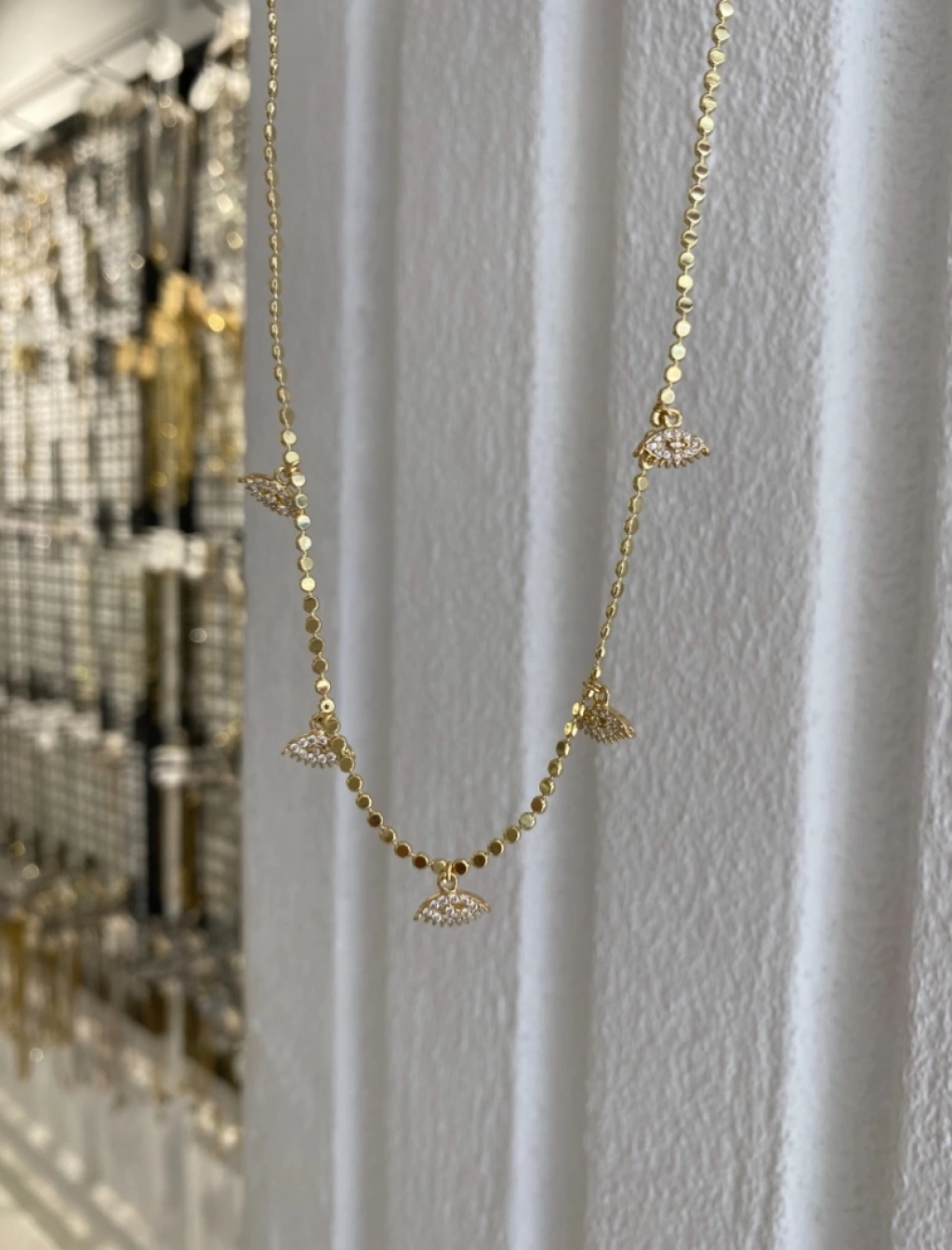 Çelik Pul Ezme Zincir Üzeri Sallantılı Göz Kolye