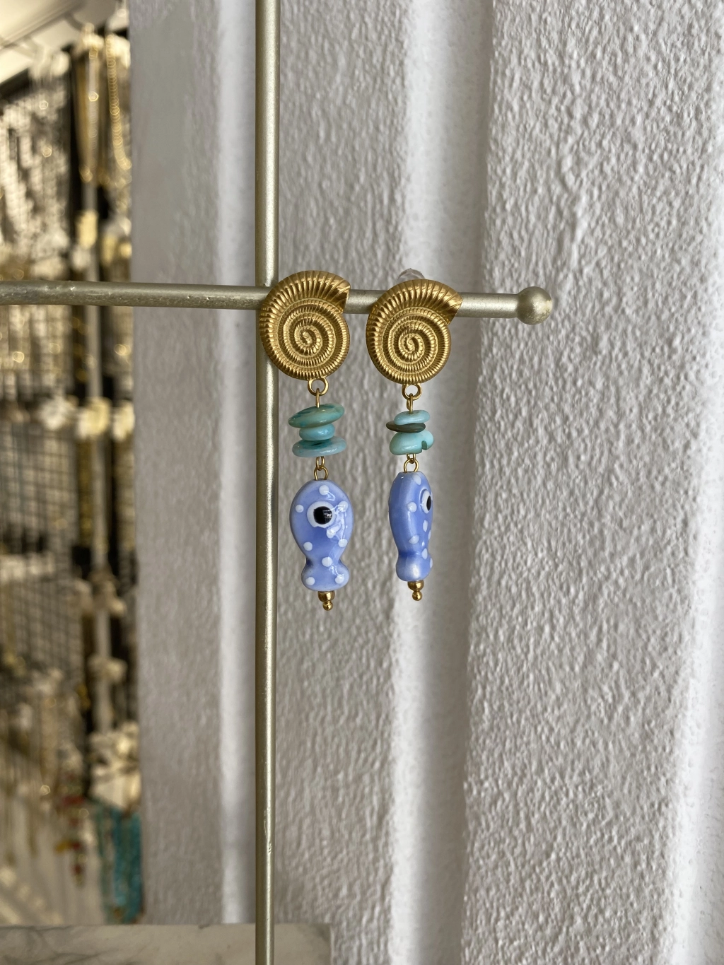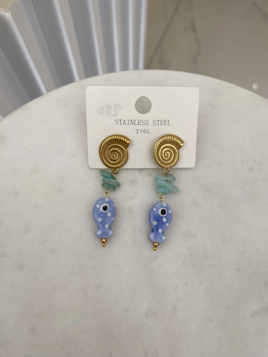 Çelik Deniz Kabuğu ve Sallantılı Balık Küpe