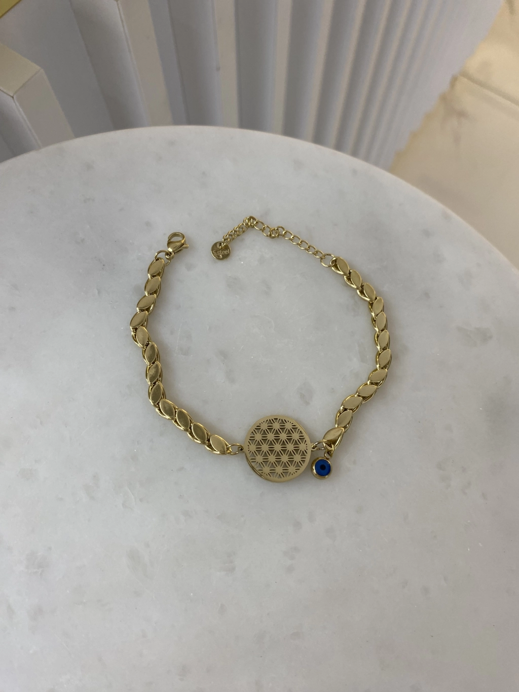 Çelik Nazar Boncuk Detay Yonca Bileklik