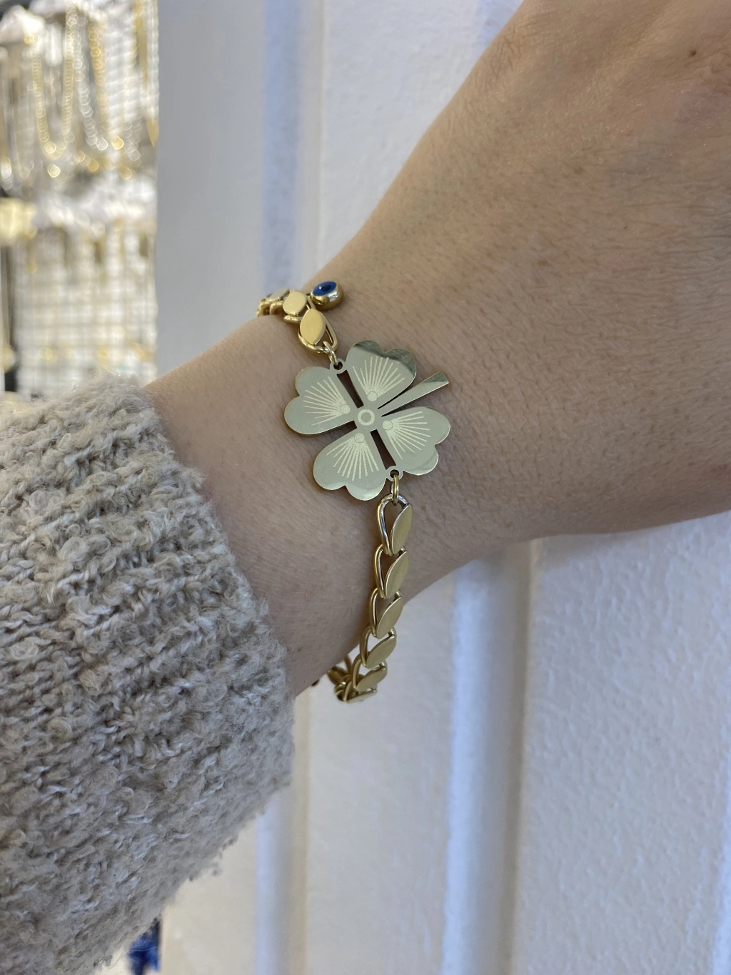 Çelik Nazar Boncuk Detay Yonca Bileklik