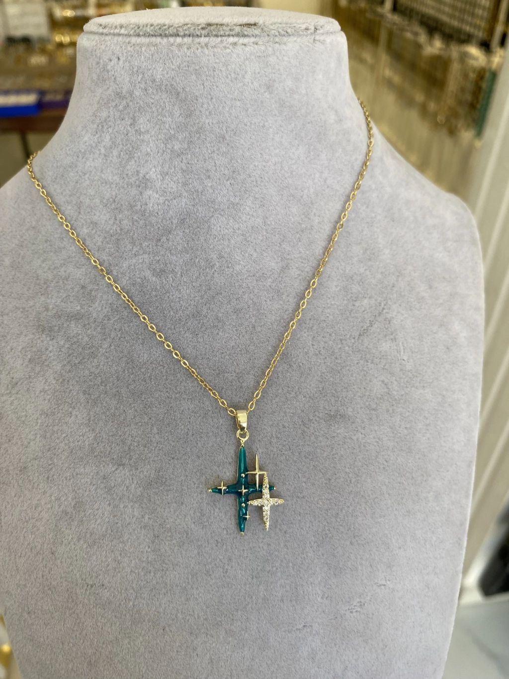 Çelik Yeşil Mineli Kuzey Yıldızı Kolye