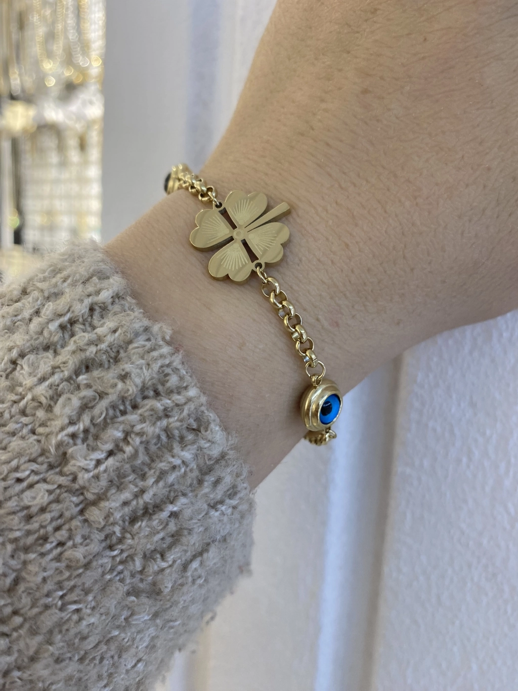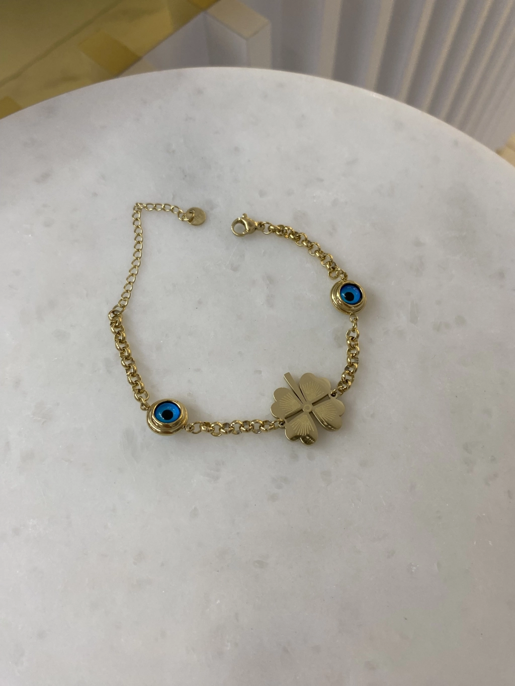 Çelik Nazar Boncuk Detay Yonca Bileklik