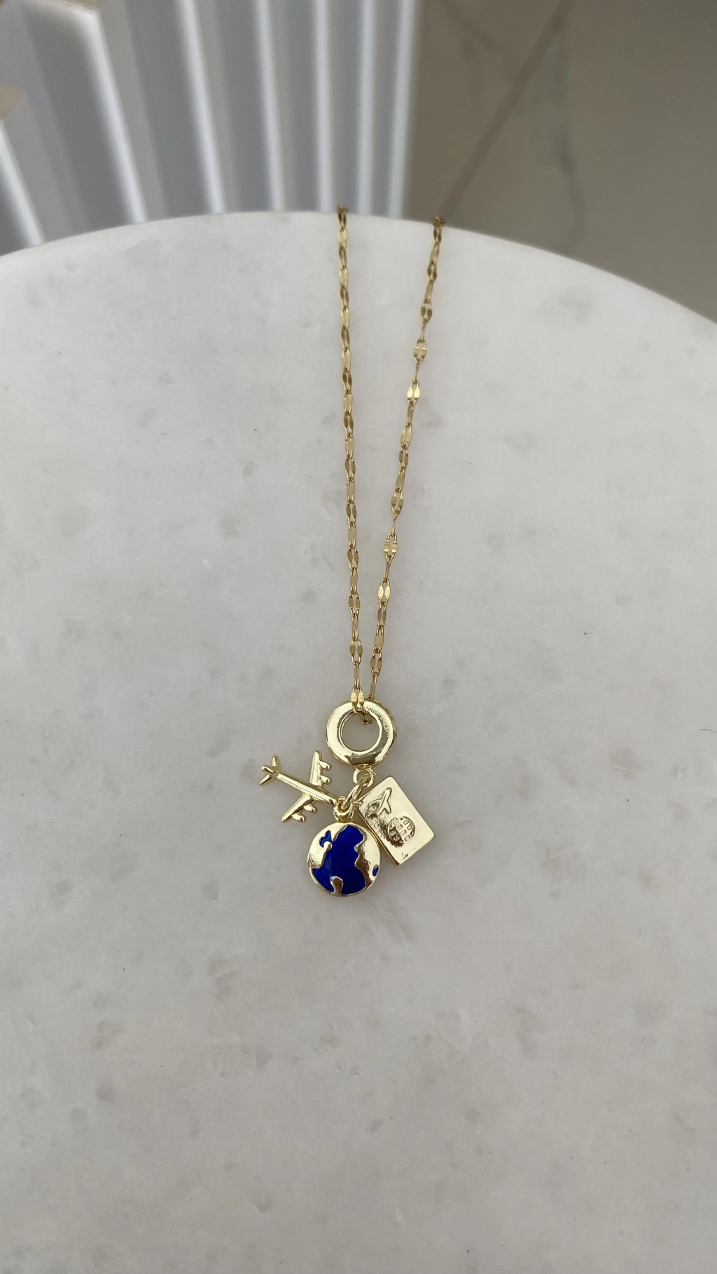 Çelik Uçak ve Yassı Dünya Charm Kolye