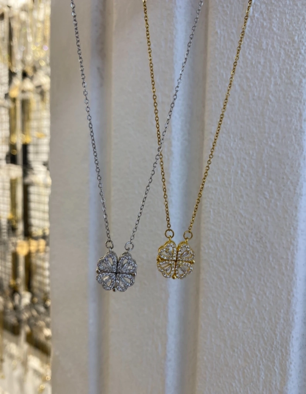 Çelik Zirkon Taş Detay Kendinden Mıknatıslı Yonca Kolye