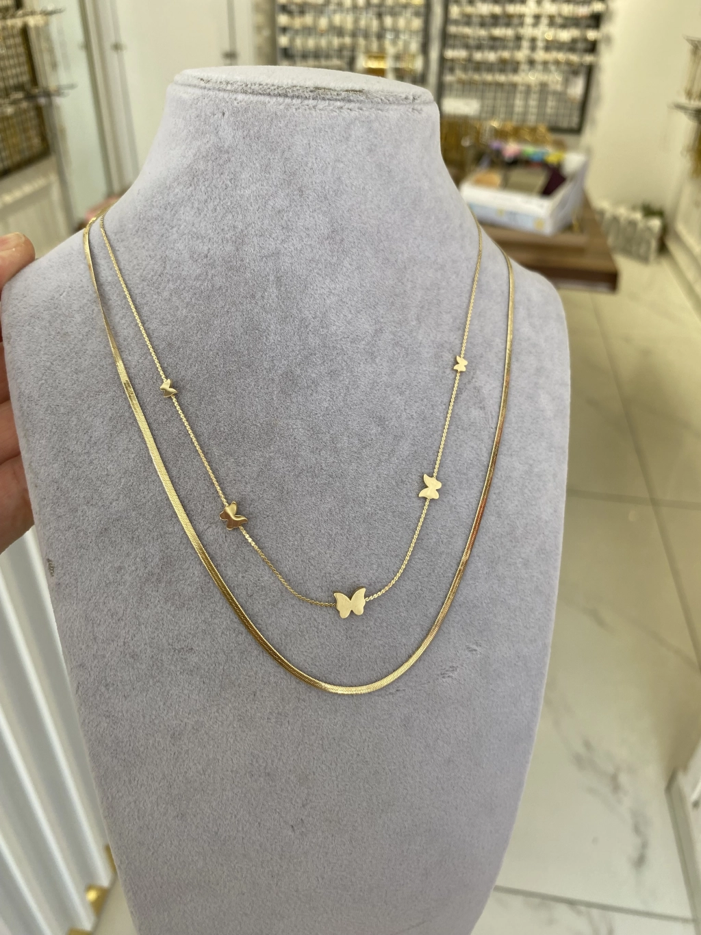 Çelik Kelebek Detay İkili İtalyan Zincir Kolye