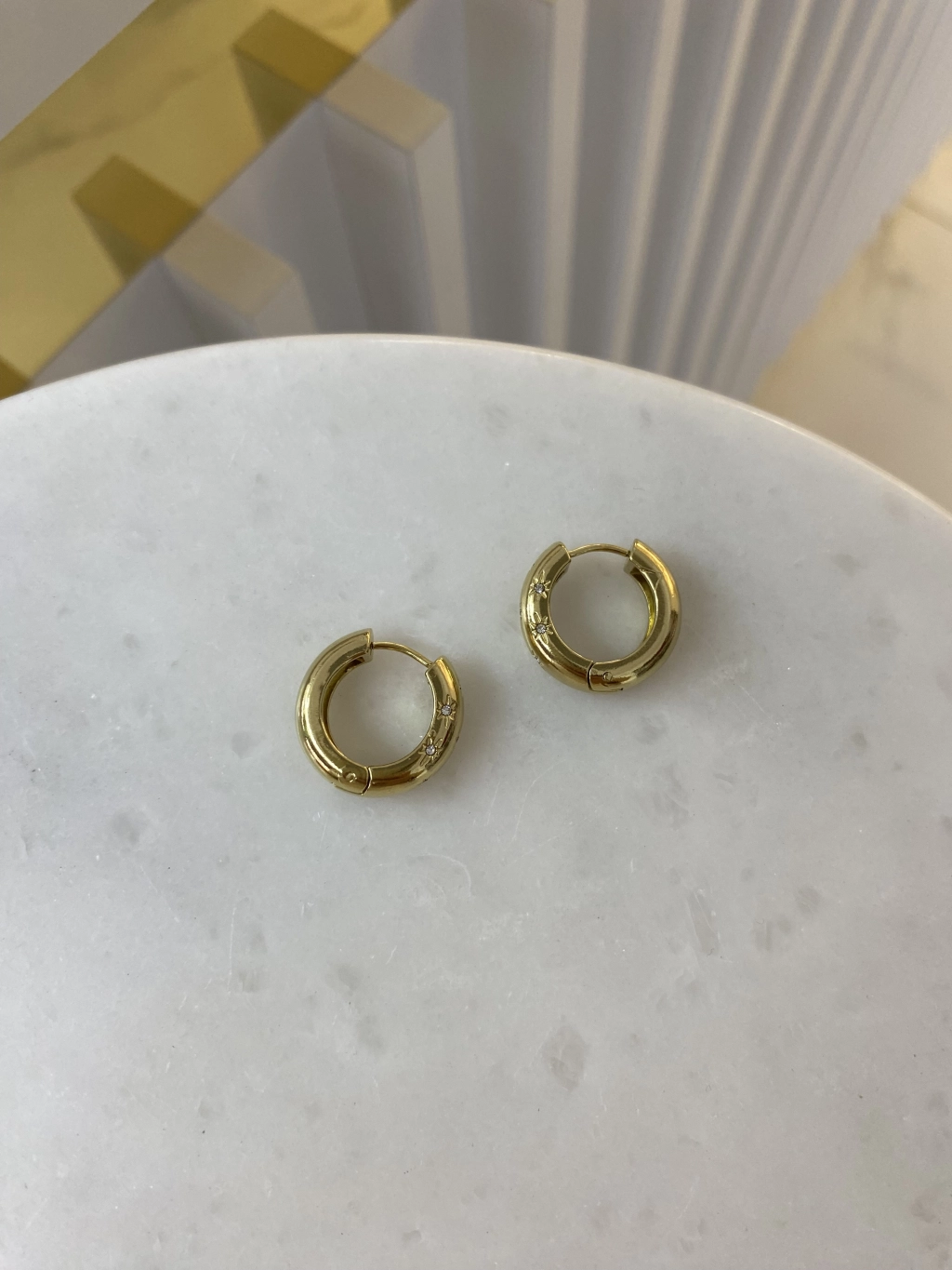 Çelik Yıldız Detay Bombeli Halka Küpe