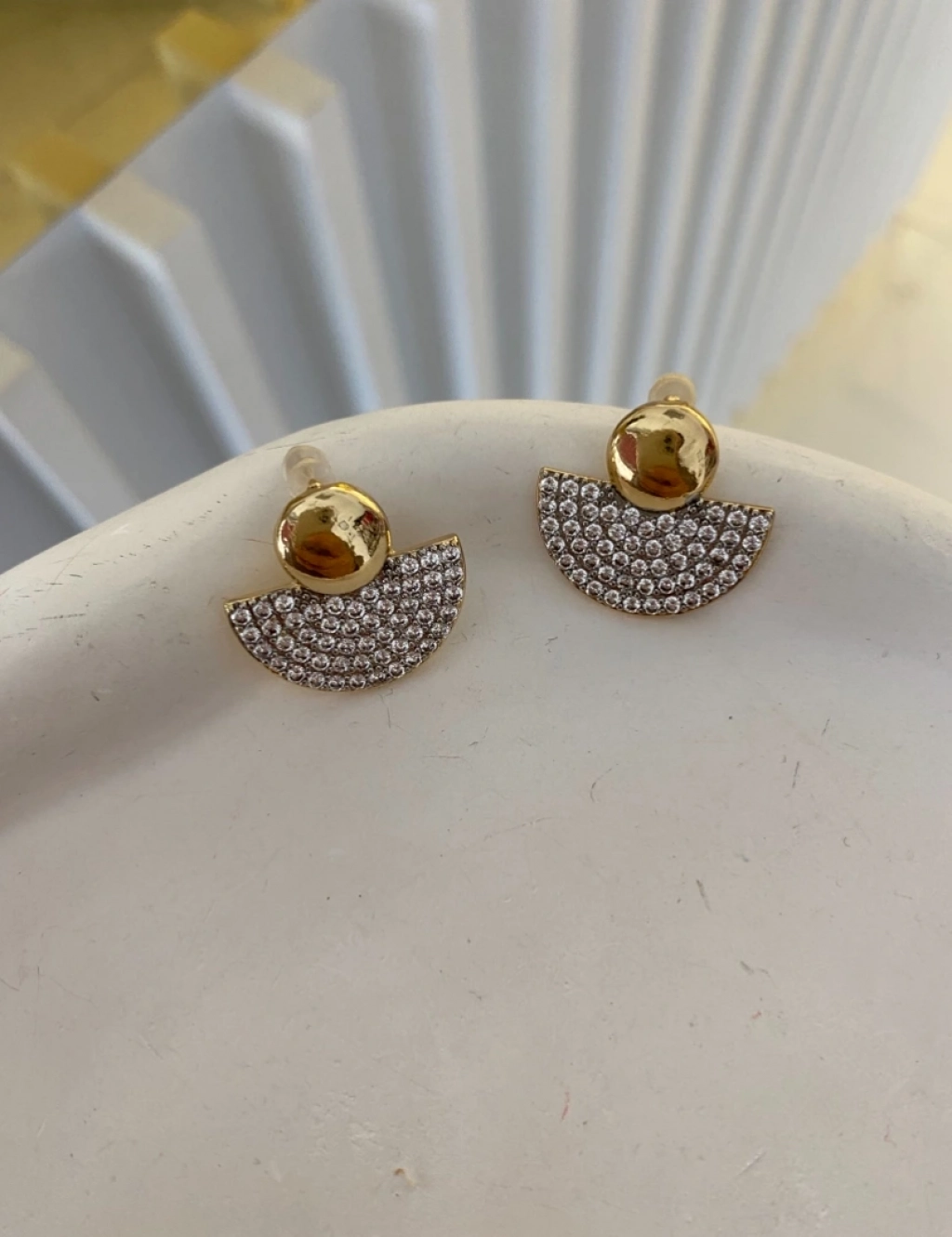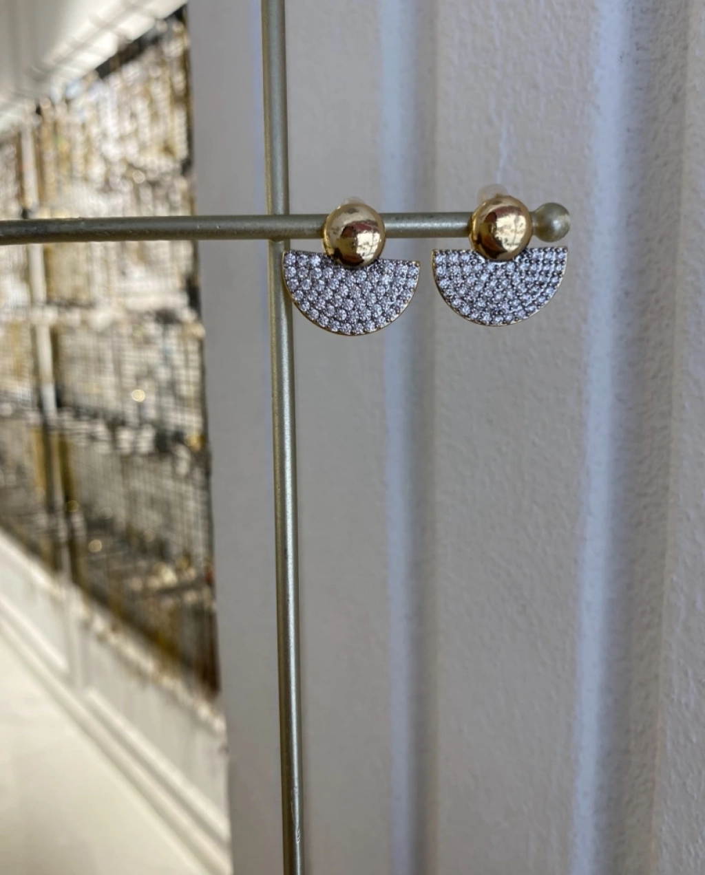 Çelik Zirkon Taş Yarım Daire Küpe