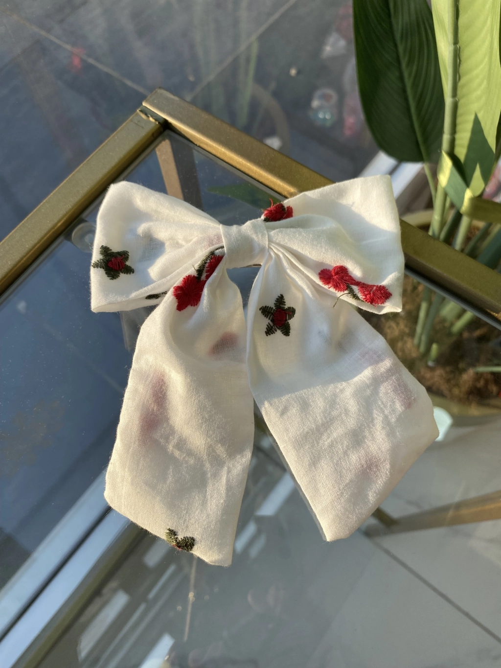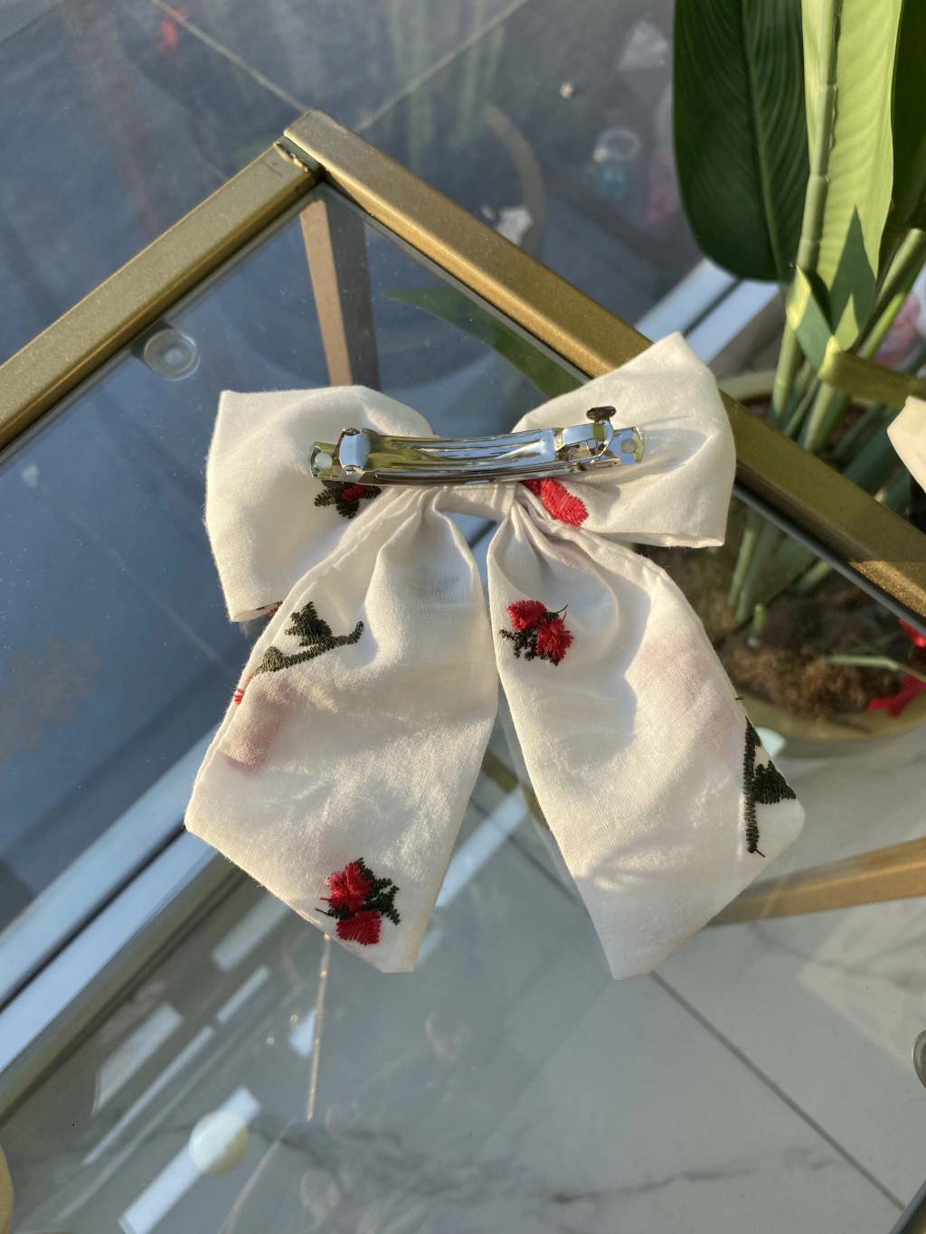 Kırmızı İşlemeli Çiçek Detay Beyaz Fiyonk Toka