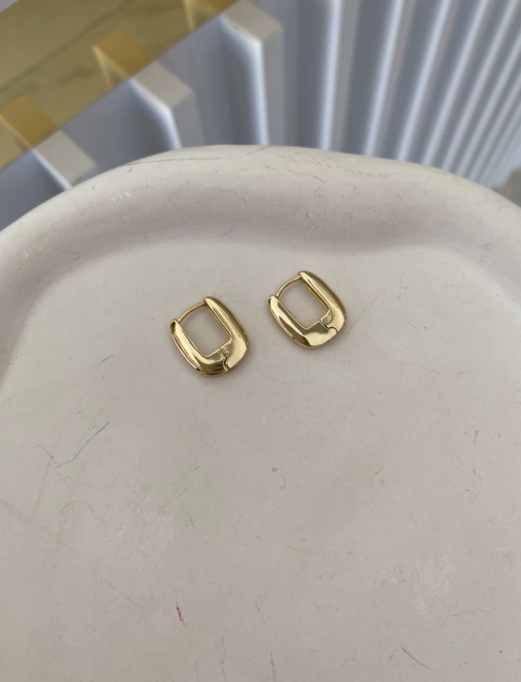 Özel Seri Kare Plaka Küpe.Renk: 14K Gold Renk Ölçü:1.5 Cm.