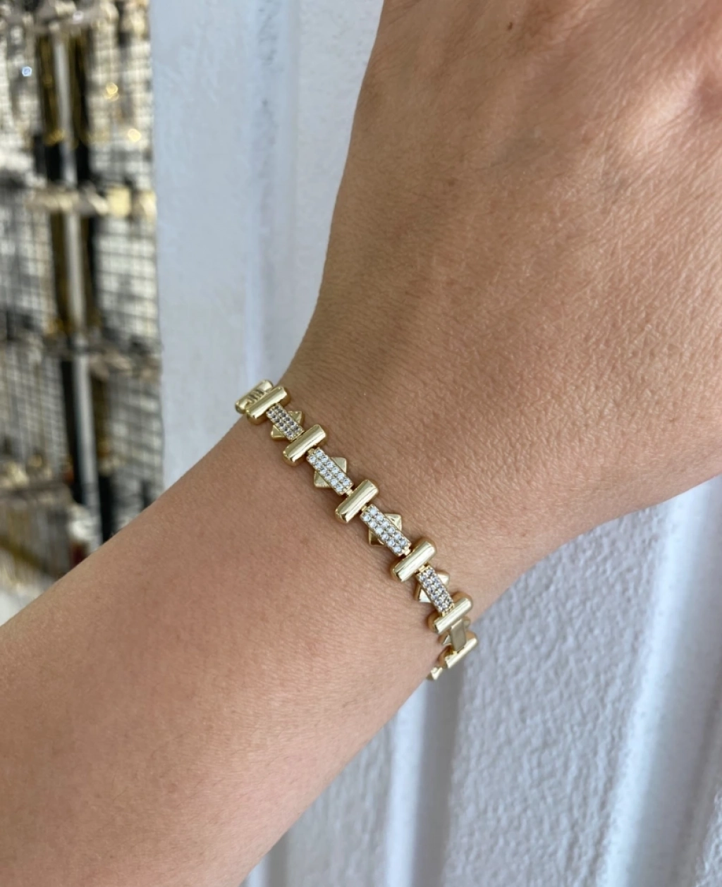 Özel Seri Zirkon Taş Detay Sıralı Kare Bileklik