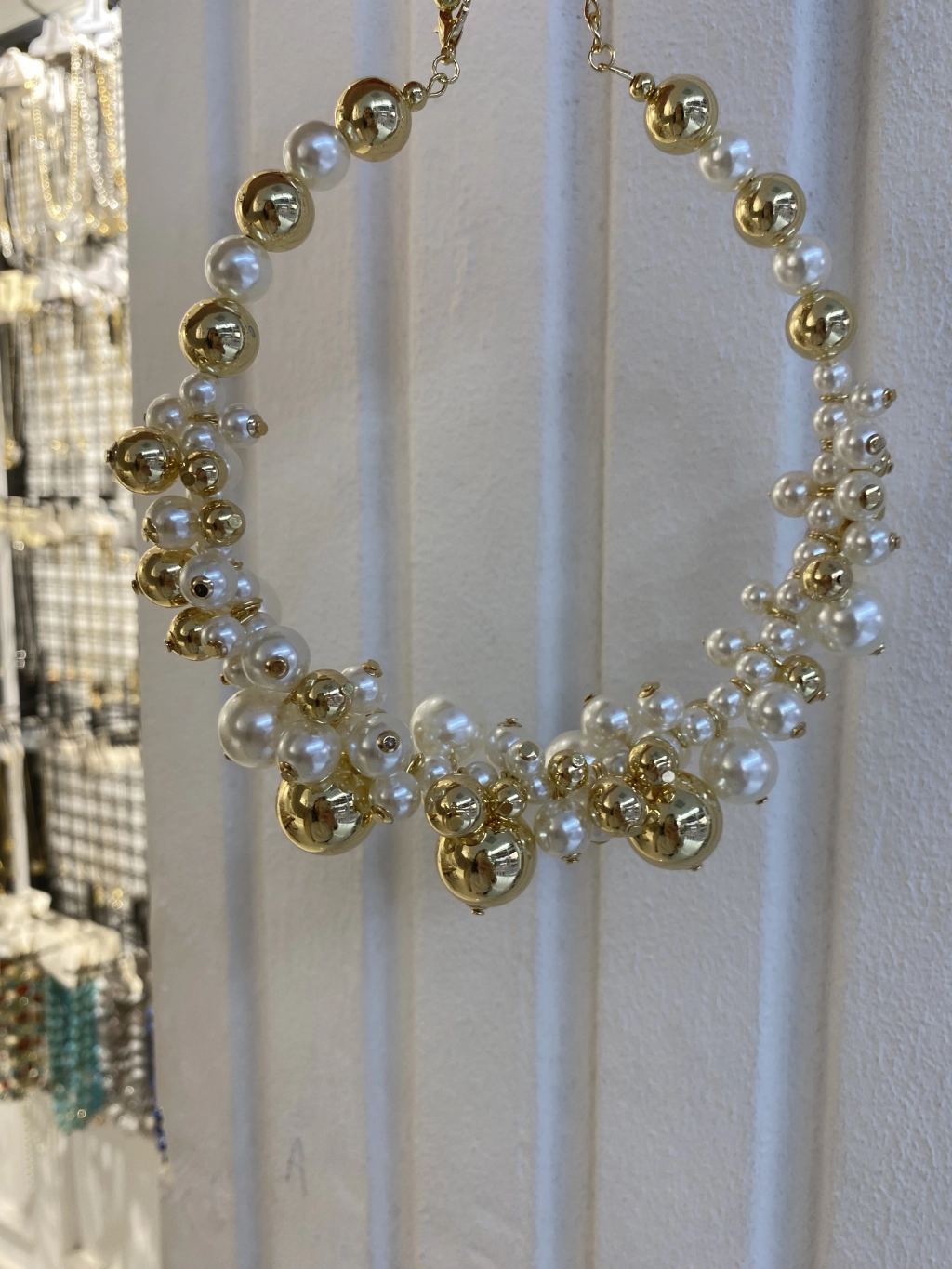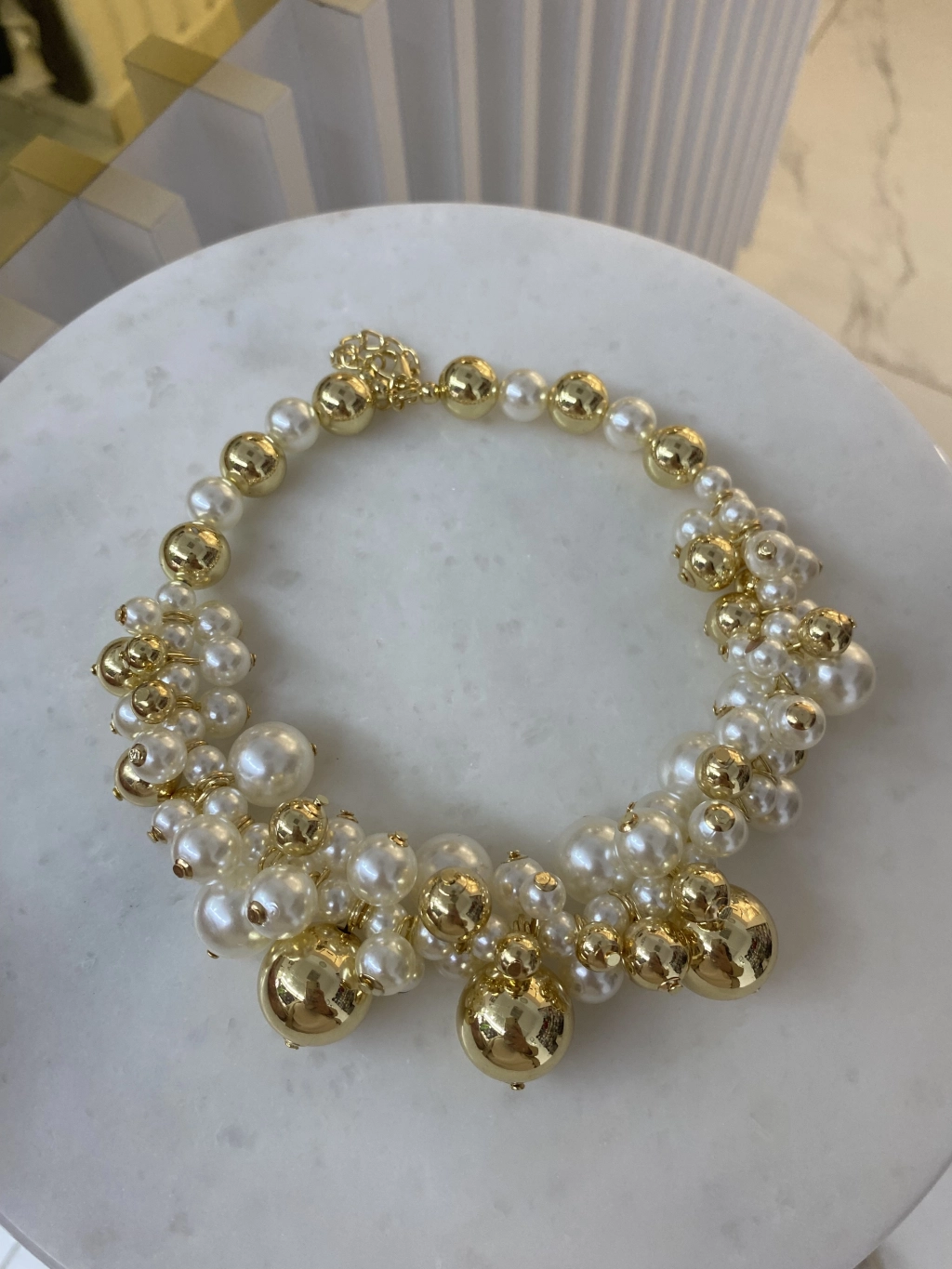Özel Seri Gold Boncuk ve İnci Boncuk Detay Sıralı Choker Kolye