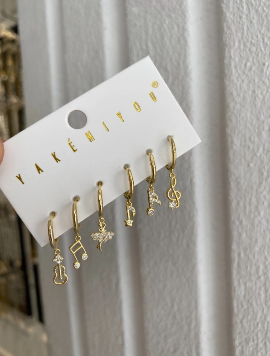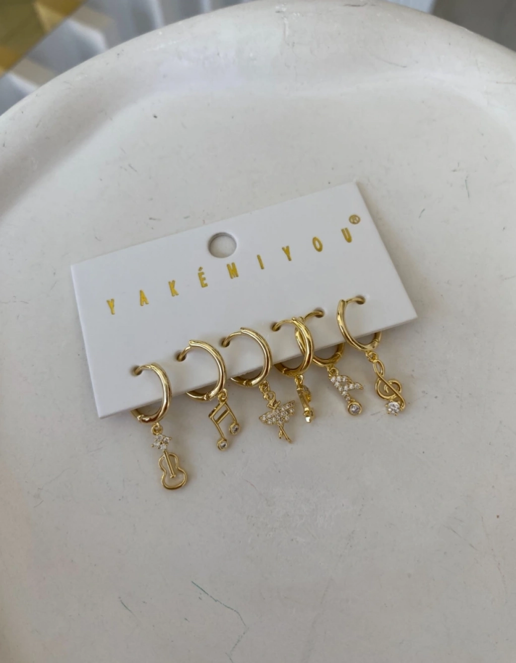 Özel Seri Nota Temalı Altılı Set KüpeRenk: 14K Gold Renk Ölçü: 1.5 Cm. Boyutunda.