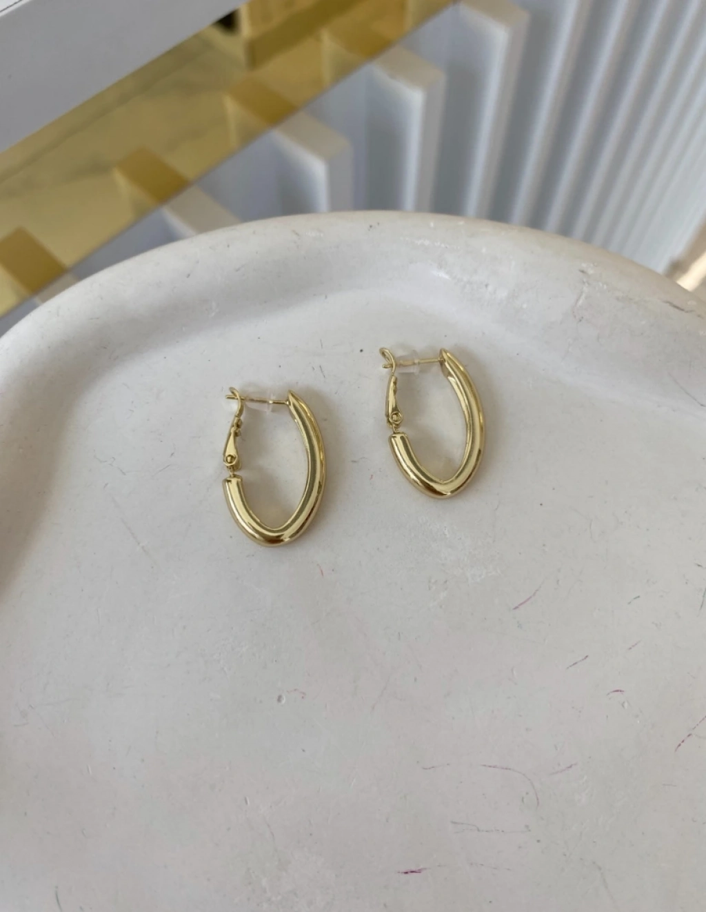 Özel Seri Oval Plaka U Küpe.Renk: 14K Gold Renk Ölçü: 2.5 Cm.