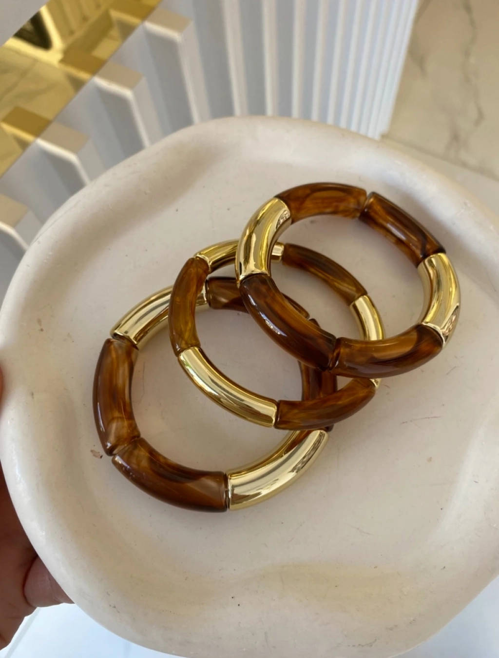 Özel Seri Üçlü Kahverengi Lastik Bileklik