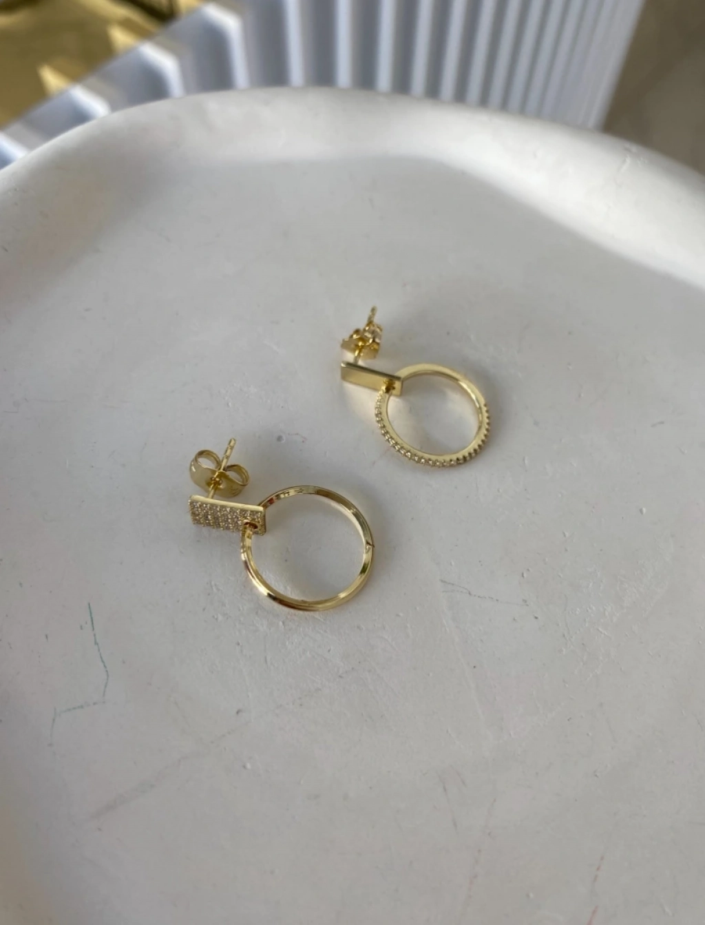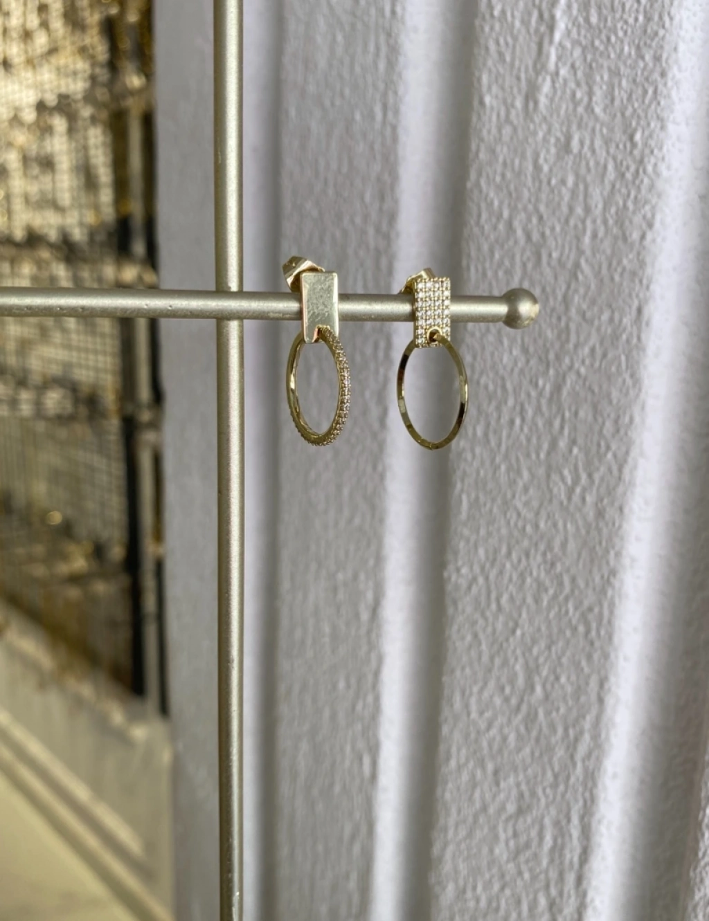Özel Seri Sallantılı Zirkon Taş Halka KüpeRenk: 14K Gold Renk Ölçü: 2.5 Cm.