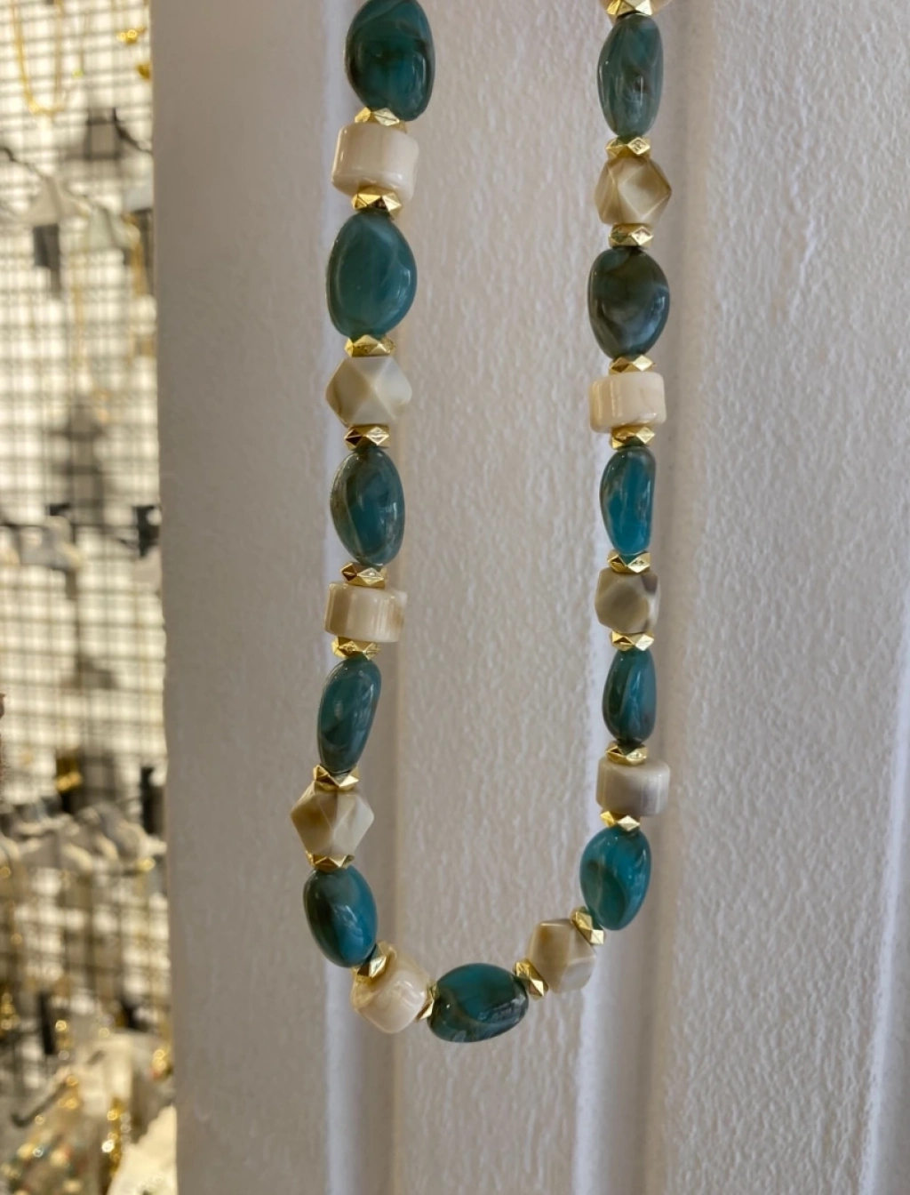 Özel Seri Yeşil Boncuk Detay KolyeRenk: Gold Renk Ölçü:45 Cm