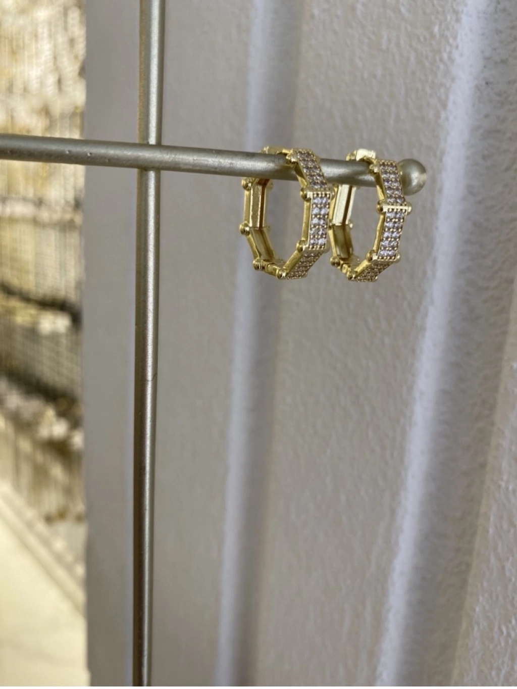 Özel Seri Sıralı Zirkon Taş Sekizgen KüpeRenk: Gold Renk Ölçü: 2.0 Cm.