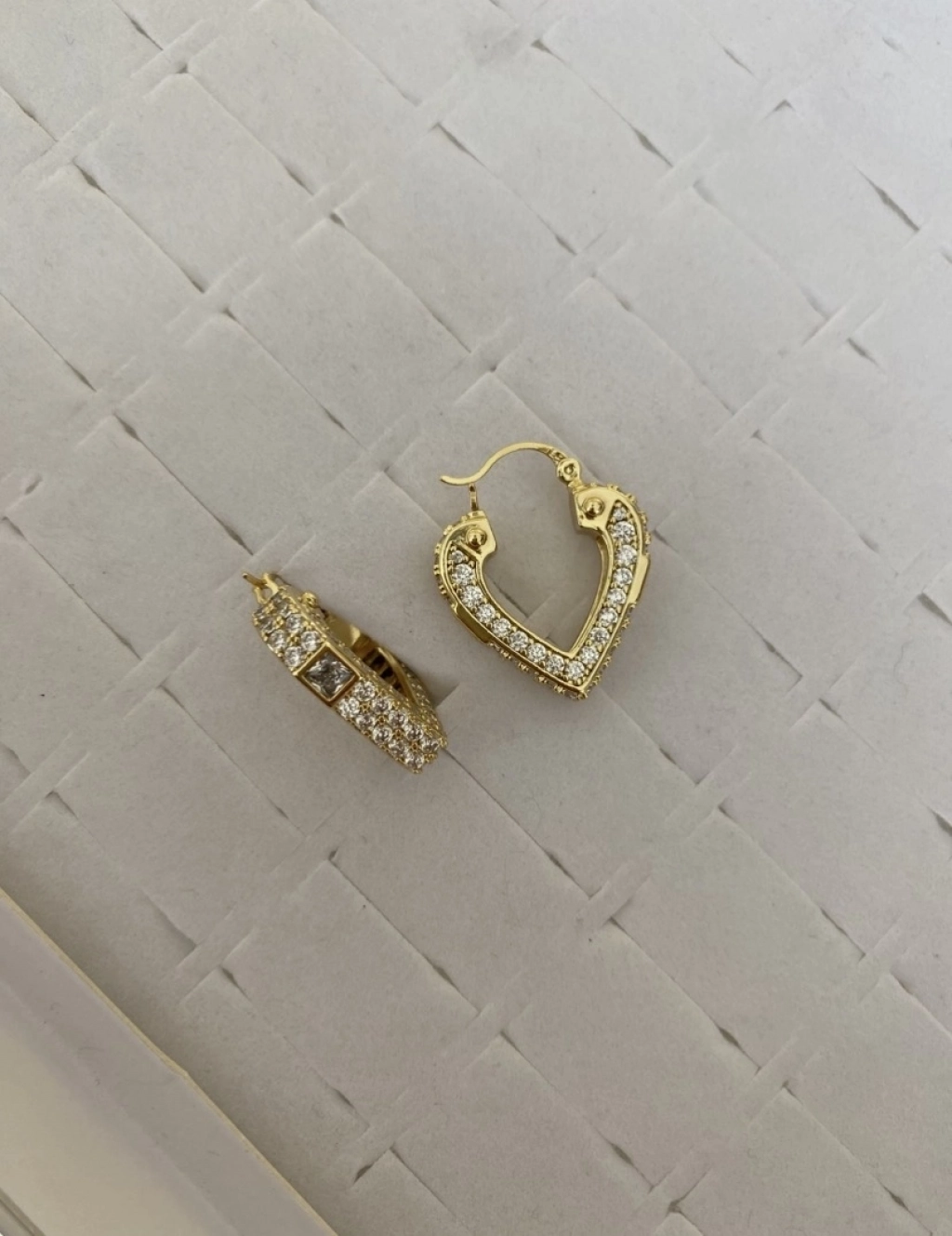 Özel Seri Sıralı Zirkon Taş Kalp KüpeRenk: Gold Renk Ölçü: 2.5 Cm.
