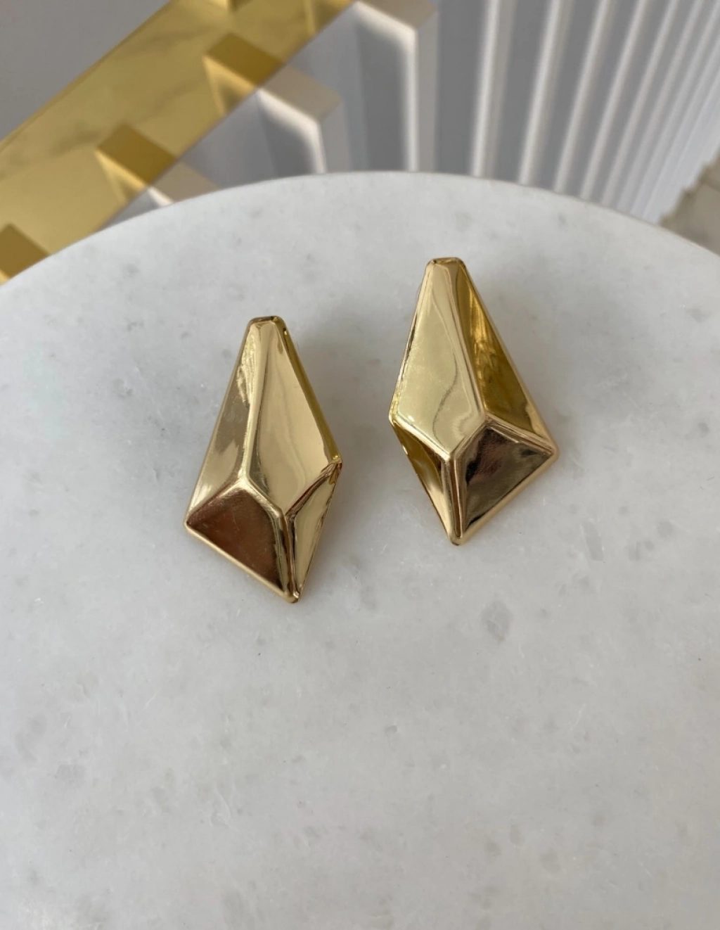Özel Seri Geometrik Tasarım KüpeRenk: Gold Renk Ölçü: 5 Cm.