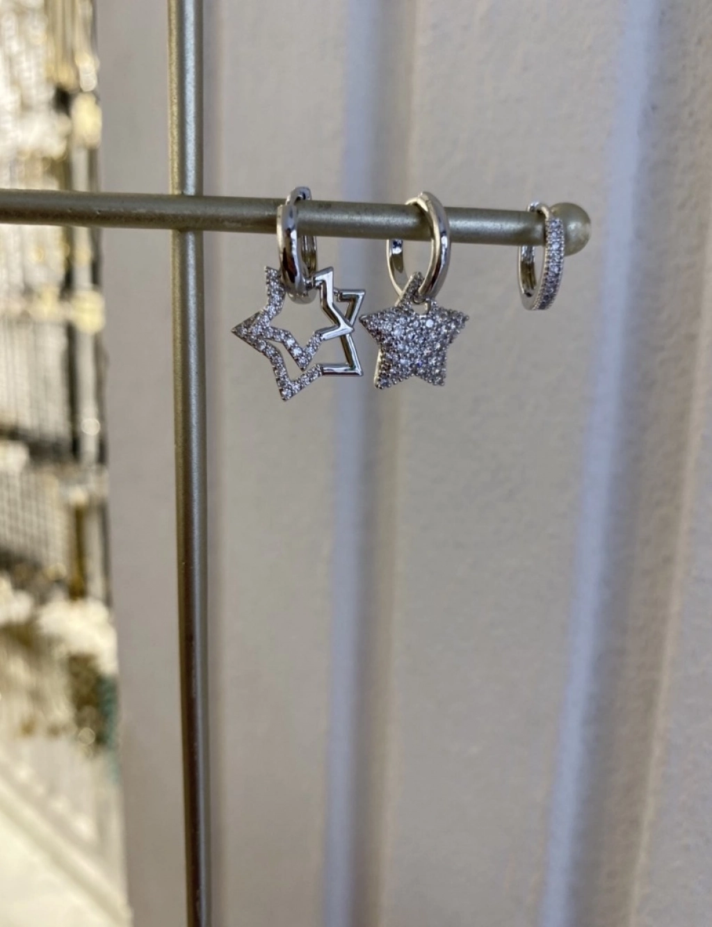 Özel Seri Zirkon Taş Üçlü Yıldız KüpeRenk: Gümüş Renk Ölçü: 2.5 Cm, 2.3 Cm, 1.3 Cm.