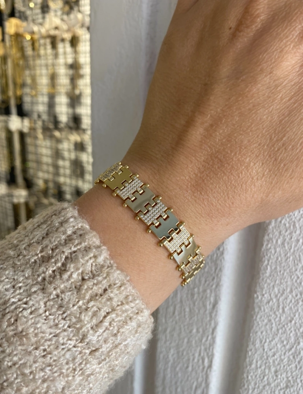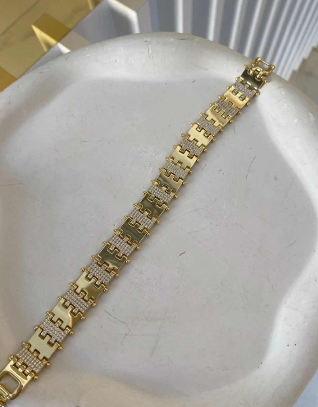 Özel Seri Sıralı Plaka ve Zirkon Taşlardan Oluşan Tasarım Bileklik