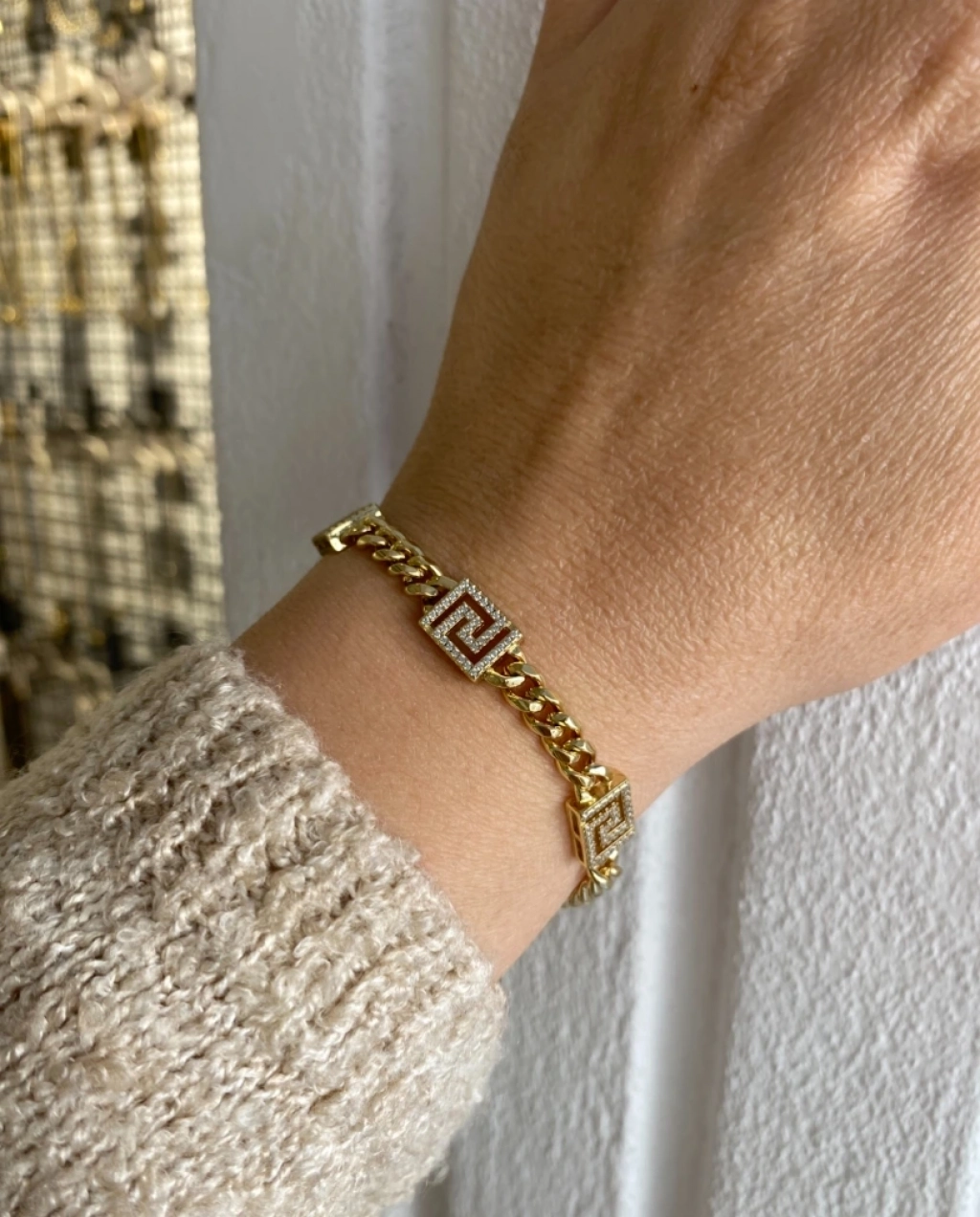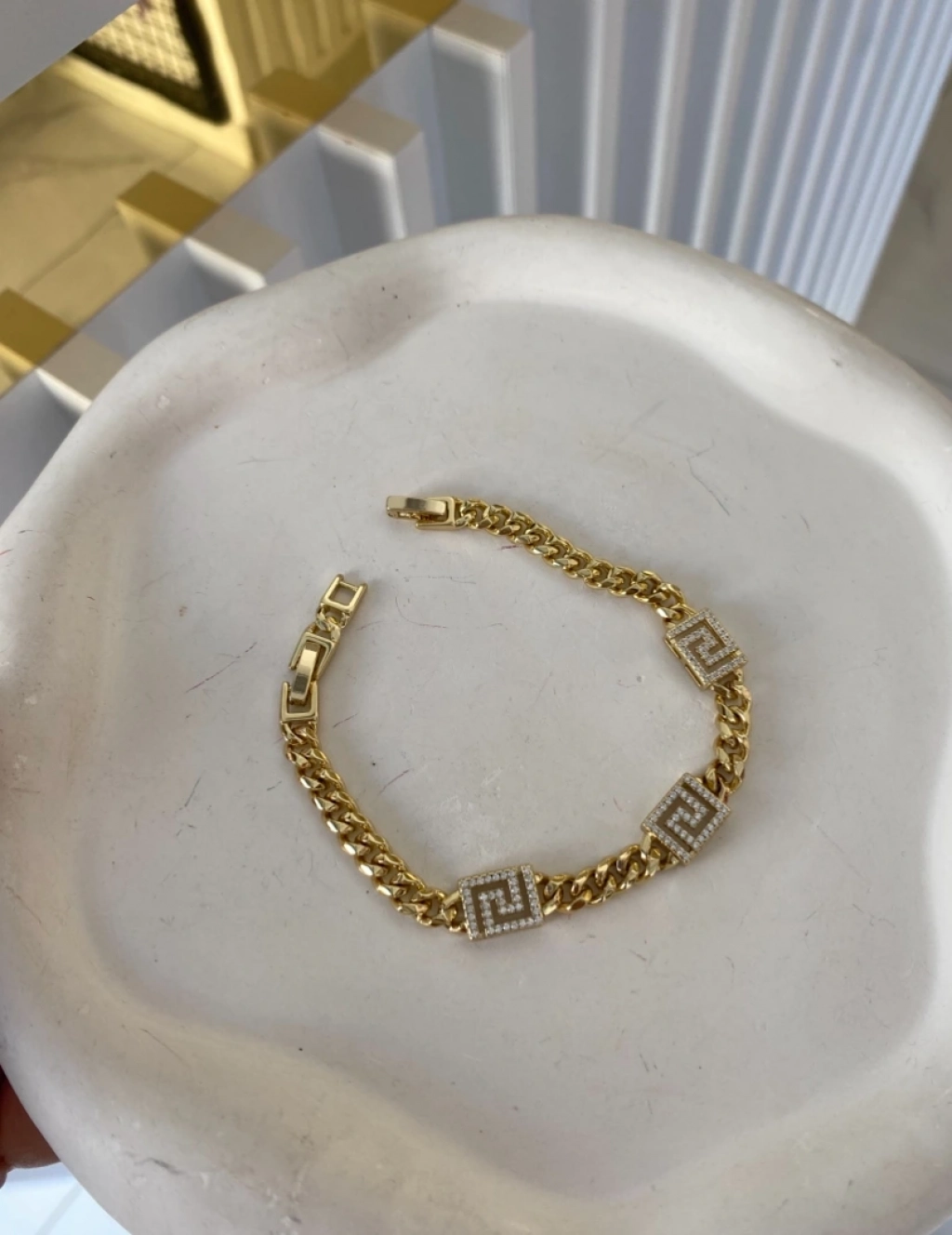 Özel Seri Sıralı Plaka ve Zirkon Taşlardan Oluşan Tasarım Bileklik