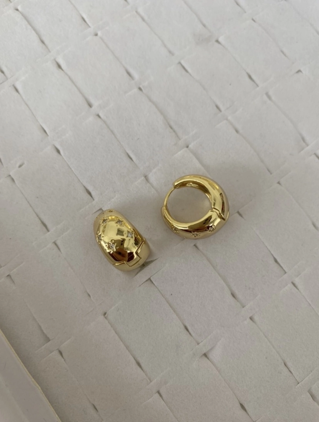 Özel Seri Zirkon Yıldız Taş Bombe Halka KüpeRenk: Gold Renk Ölçü: 1.5 Cm.
