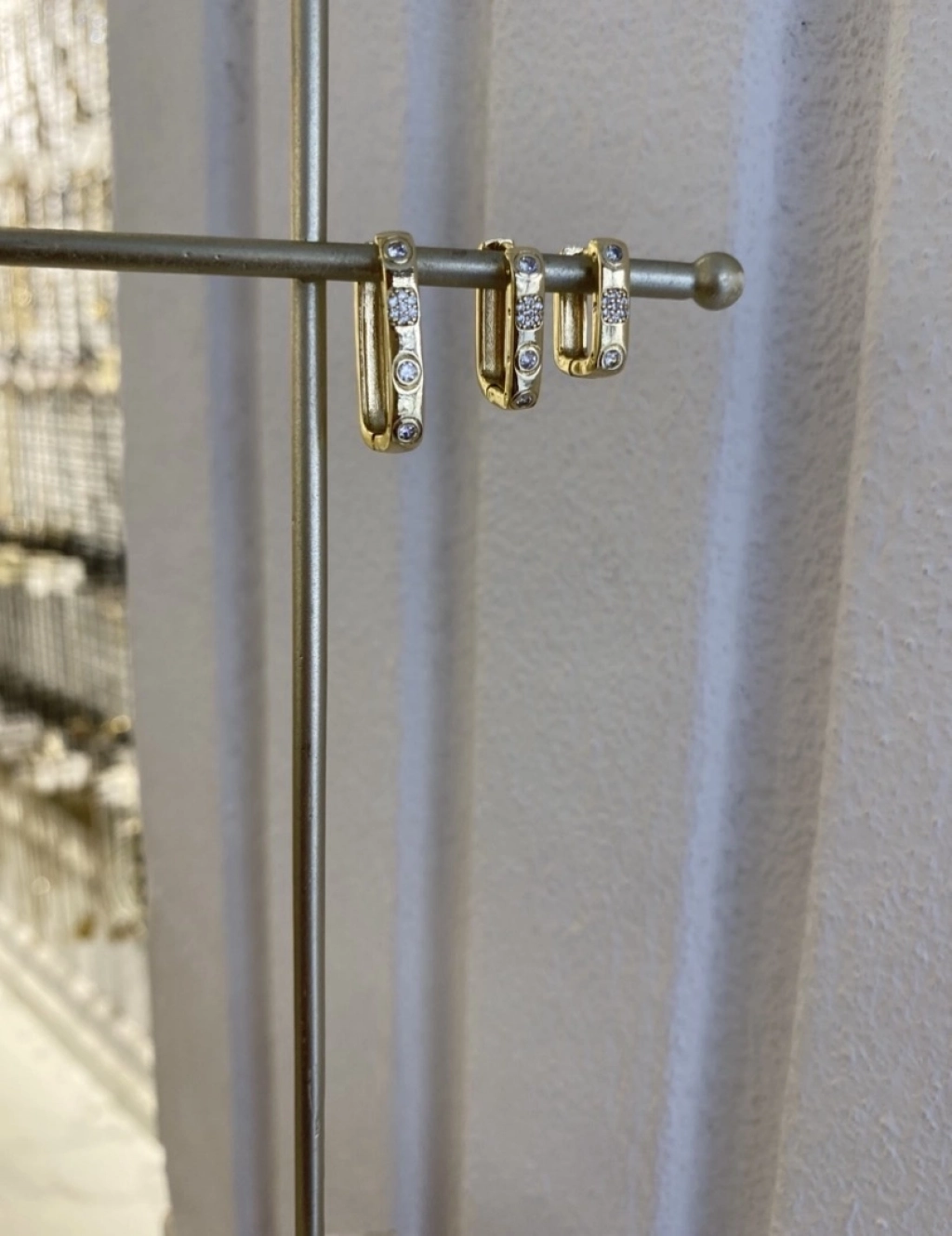 Özel Seri Üzeri Zirkon Taş Dikdörtgen KüpeRenk: Gold Renk Ölçü: 2.2 Cm, 1.5 Cm, 1.2 Cm.