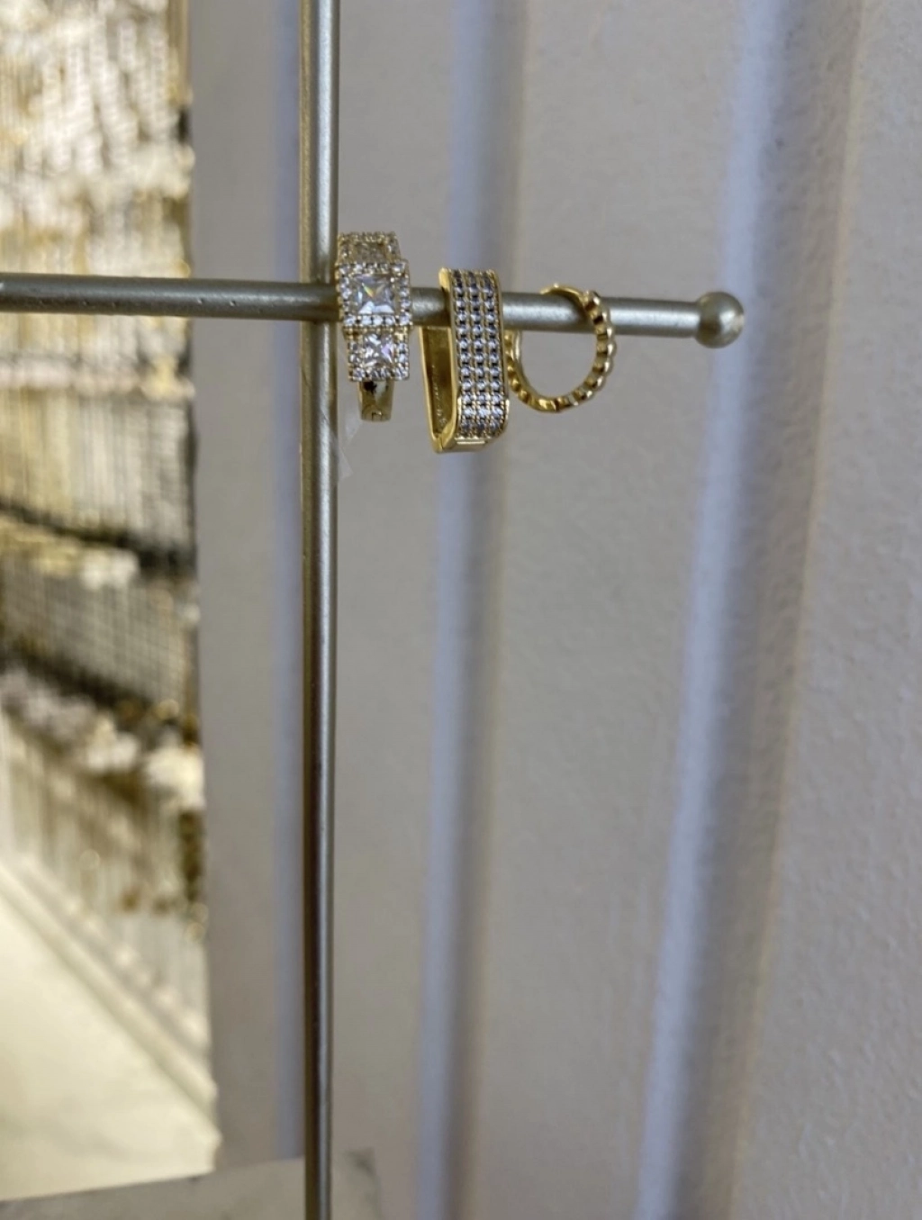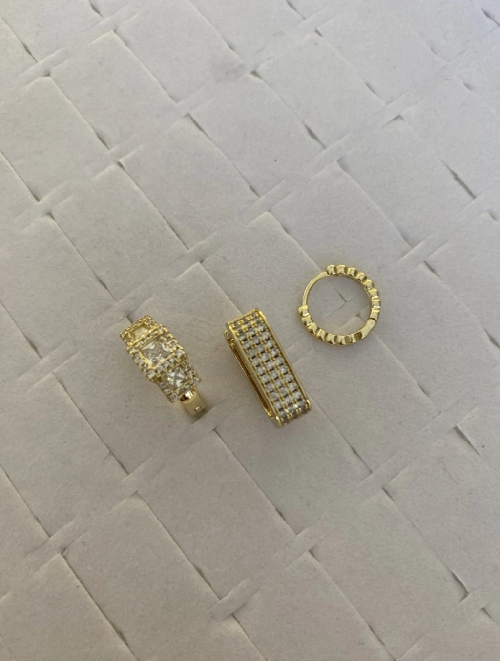 Özel Seri Zirkon Taş Üçlü Kare ve Halka KüpeRenk: Gold Renk Ölçü: 1.6 Cm, 1.6 Cm, 1.2 Cm.