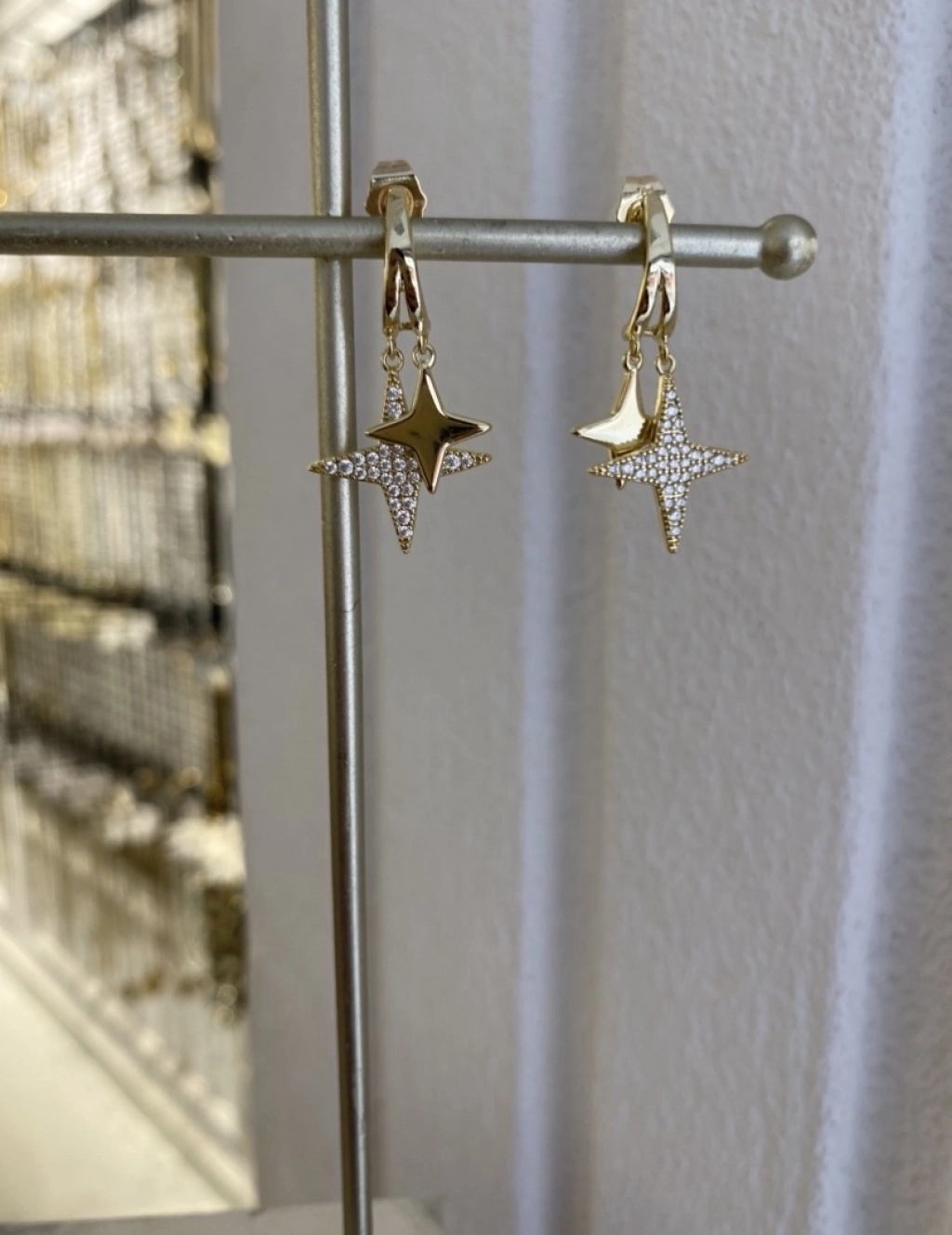 Özel Seri Zirkon Taş Sallantılı Yıldız KüpeRenk: Gold Renk Ölçü: 3.5 Cm.