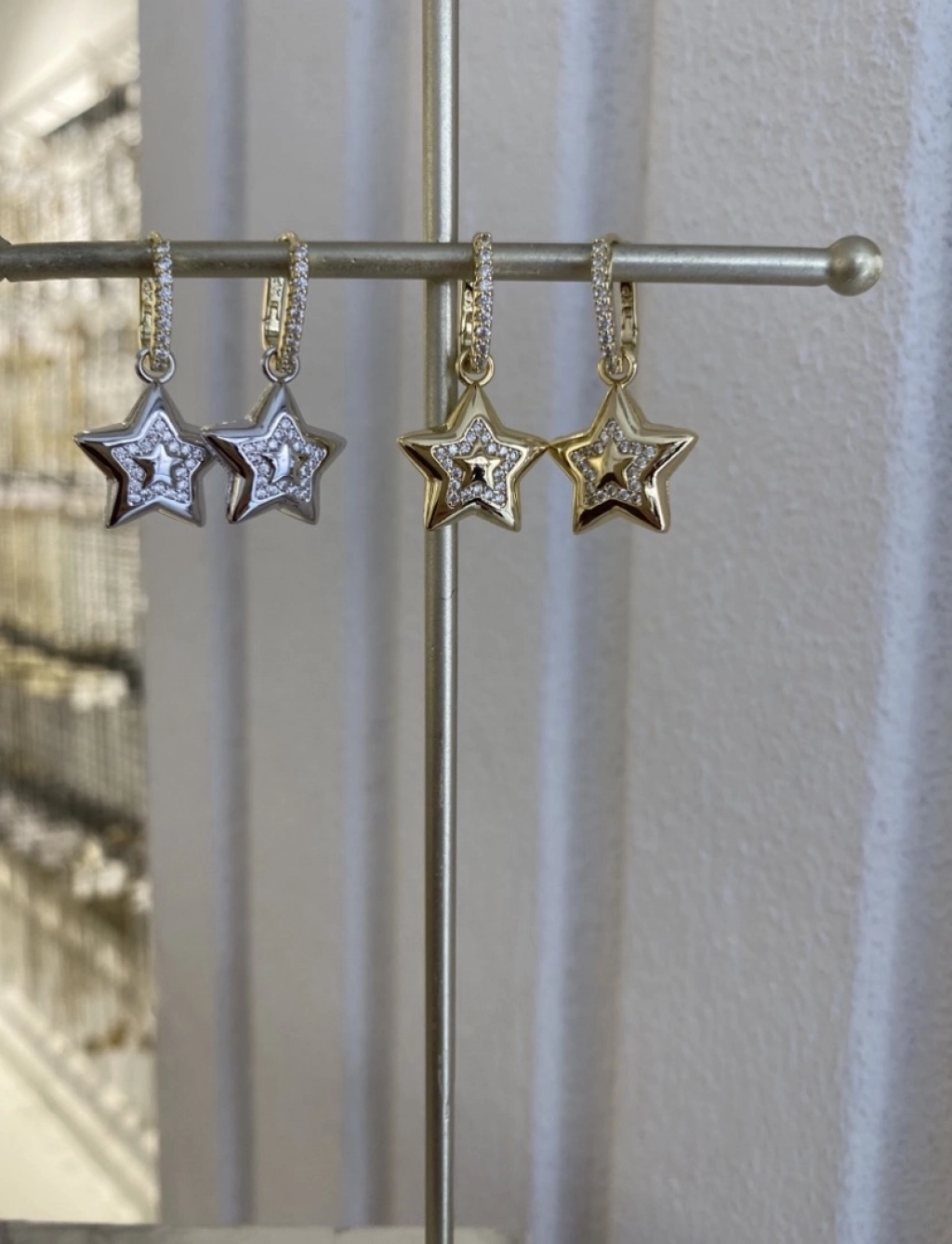 Özel Seri Sallantılı Yıldız KüpeRenk: Gold - Gümüş Renk Ölçü: 3.0 Cm.