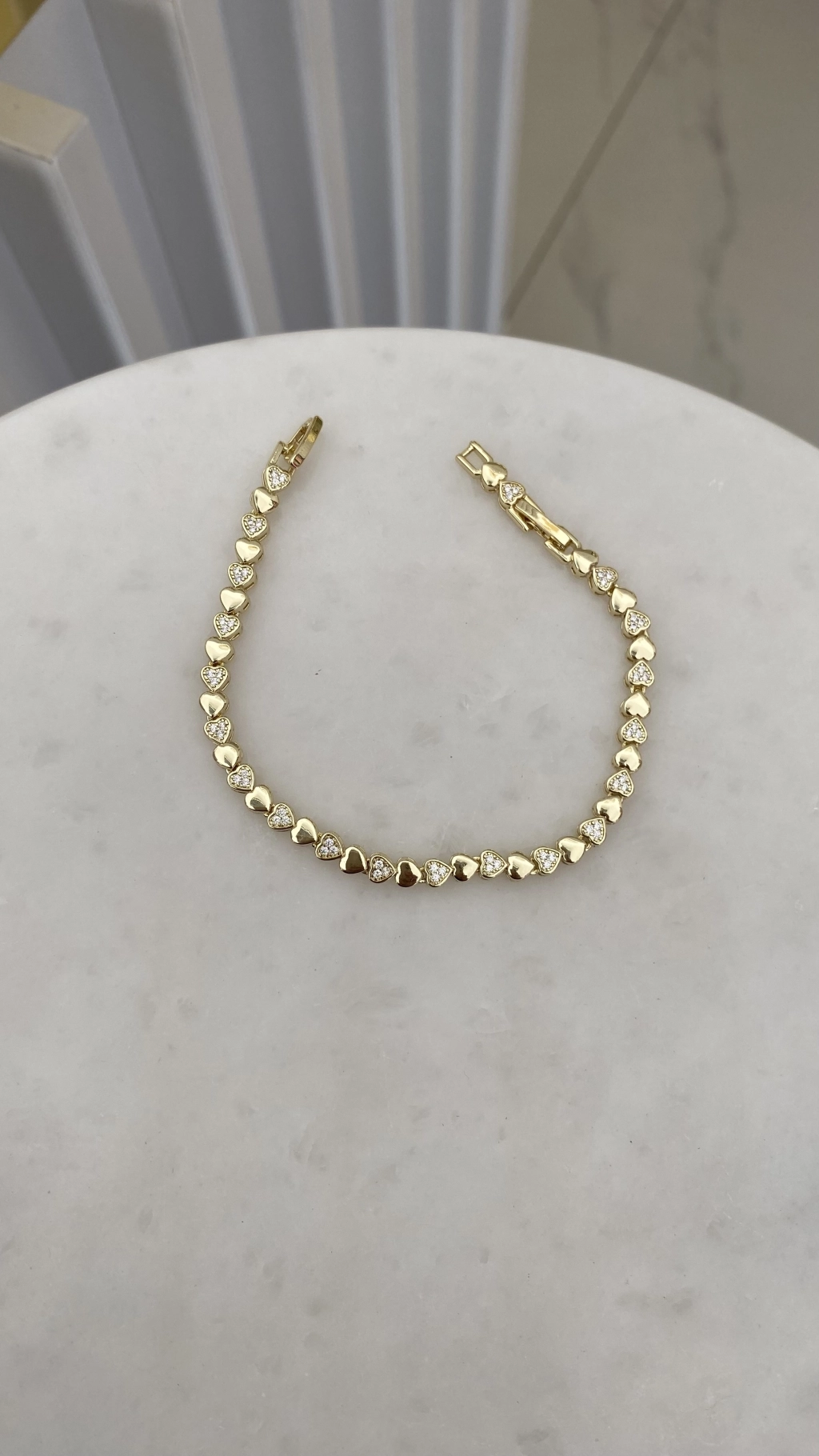 VIP Sallantılı Mini Kalp Detay Zirkon Taş Kalp Bileklik