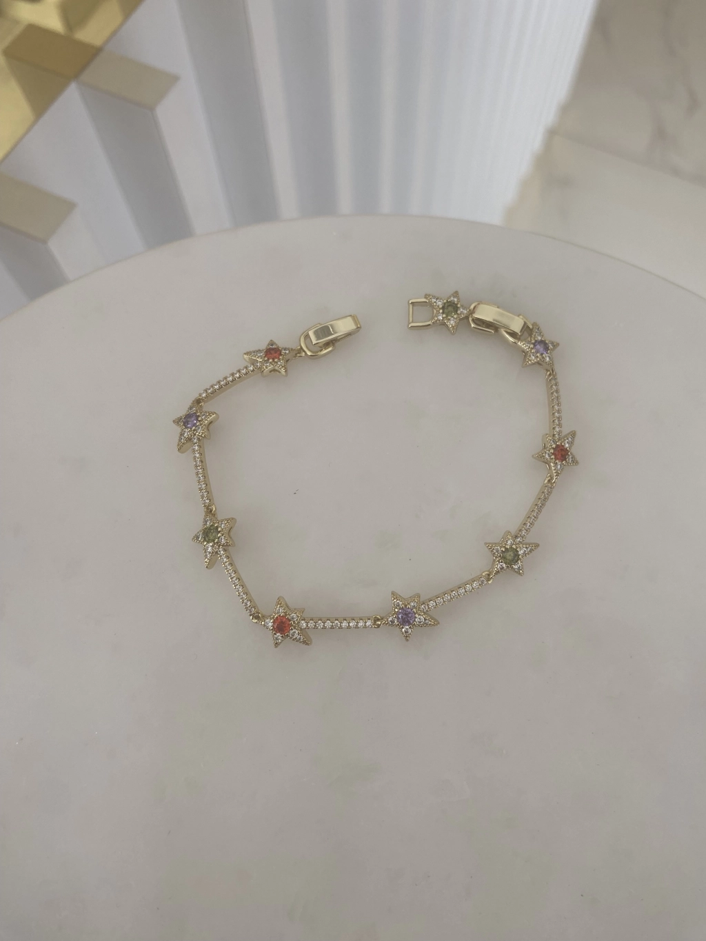 VIP Sıralı Renkli Zirkon Taş Detay Yıldız Bileklik