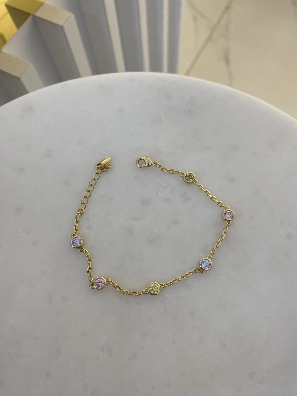 VIP İnce Zincir Üzeri Renkli Zirkon Taş Bileklik