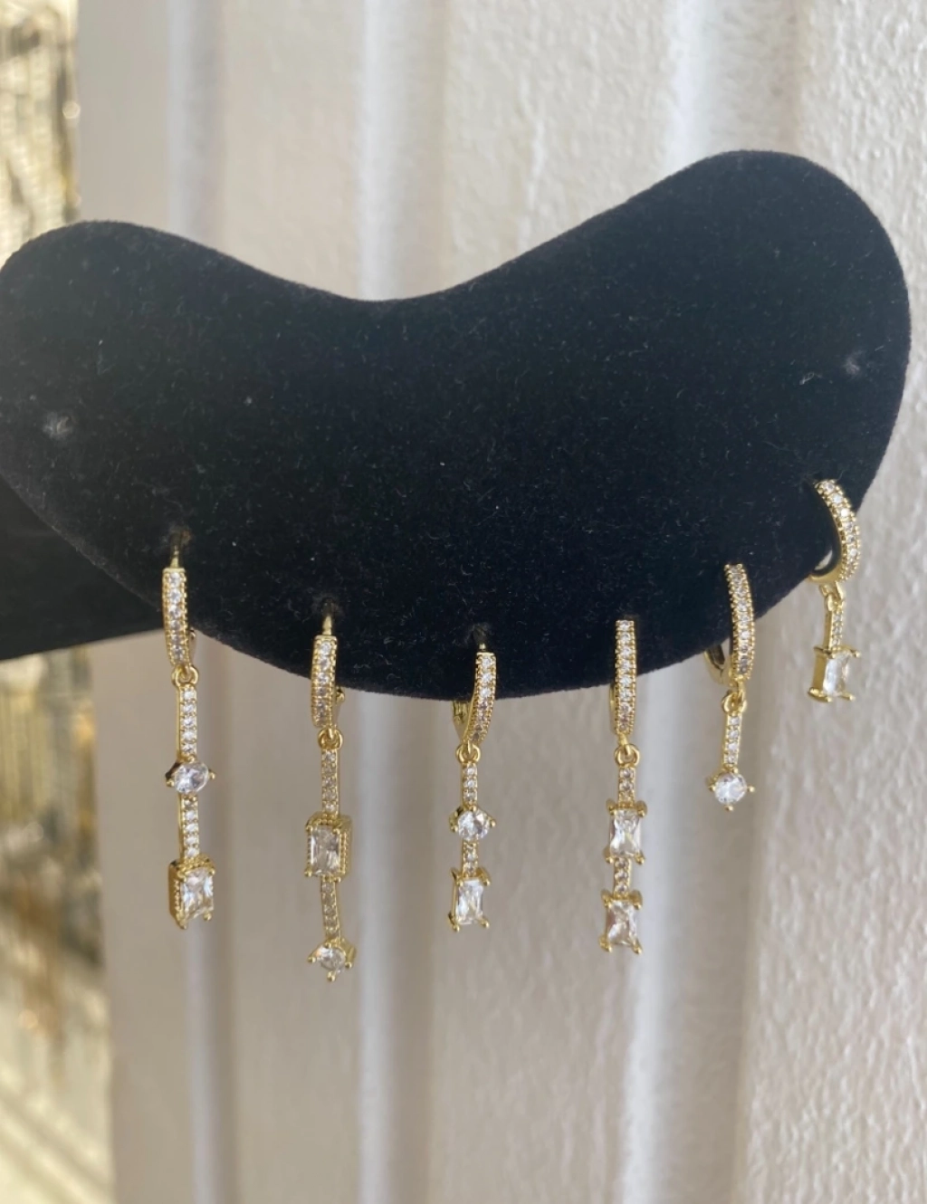 VIP Zirkon Taş Altılı Set KüpeRenk: Gold Renk Ölçü: 4.0 Cm -3.5 Cm - 2.5 Cm.