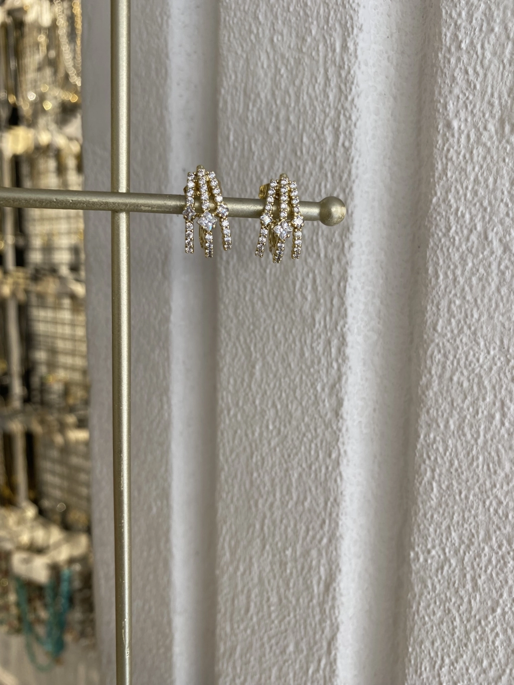 VIP İnce Sıralı Zirkon Taş Üçlü Görünüm KüpeRenk: Gold Renk Ölçü: 1.3 Cm.