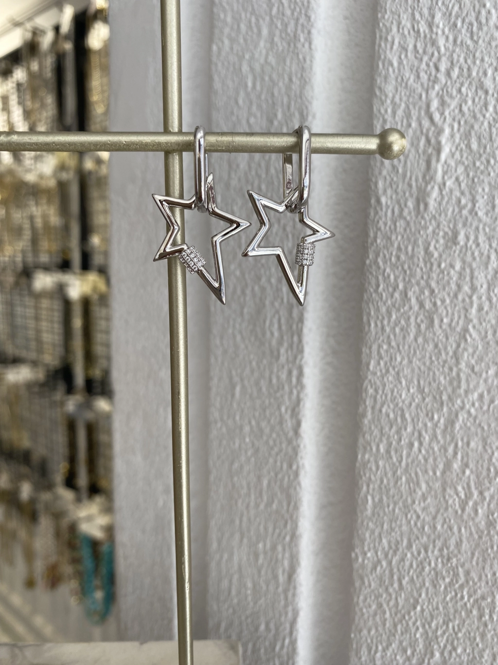 Vip Seri Sallantılı Yıldız KüpeRenk: Gümüş Renk Ölçü: 3.5 Cm.