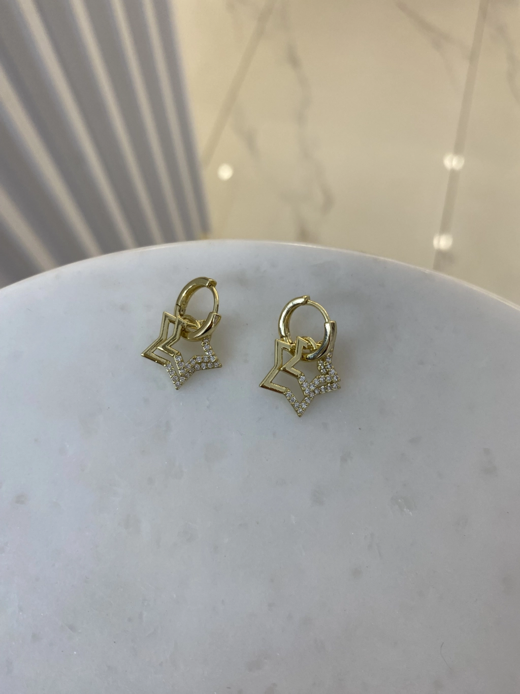 VIP Seri Sallantılı Zirkon Taş Detay Yıldız KüpeRenk: Gümüş Renk Ölçü:2.5 Cm.